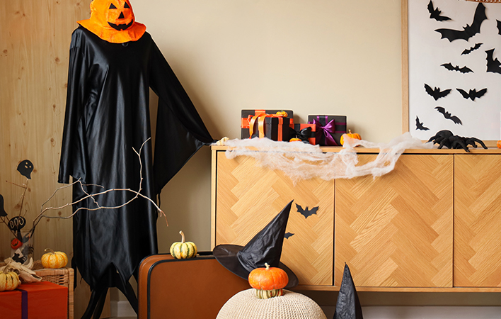 Discover elegant Halloween home decor ideas featuring HERNEST's dining tables, sideboards, desks, TV stands, and marble trays for a refined seasonal style.
