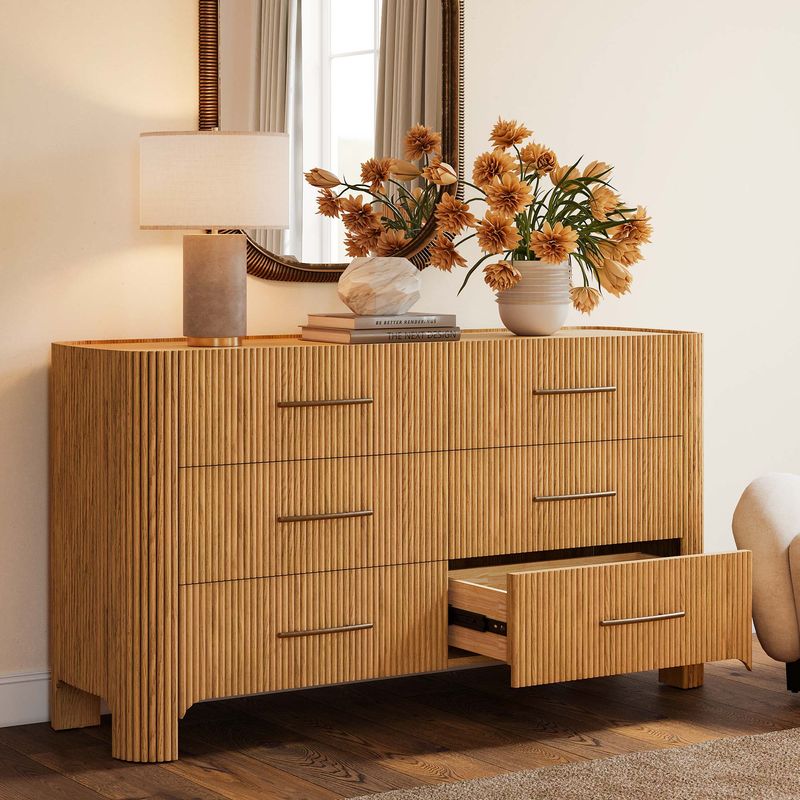 Alexa 63" Fluted 6-Drawer Oak Dresser