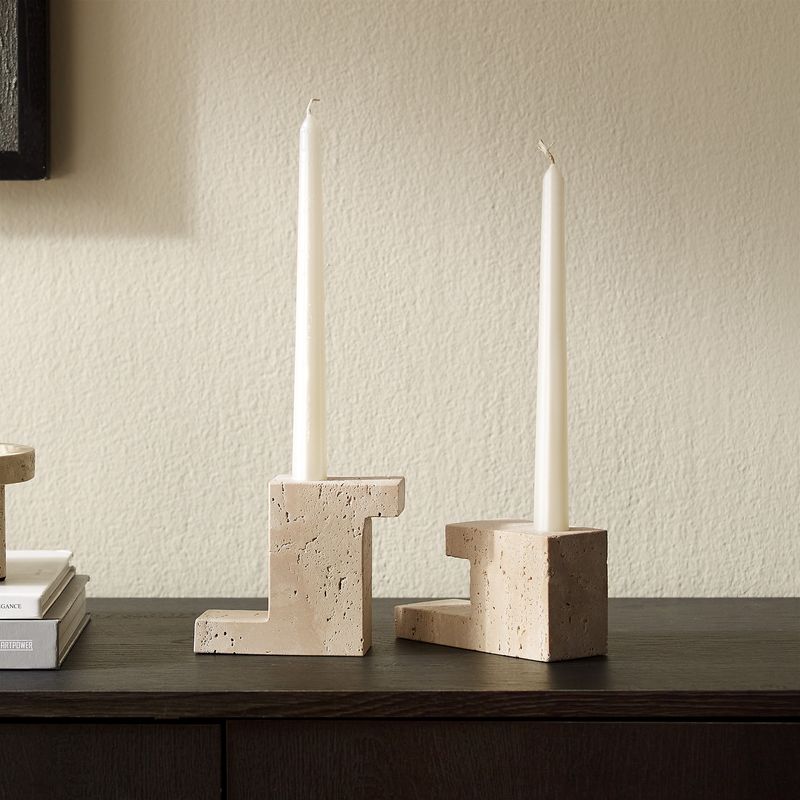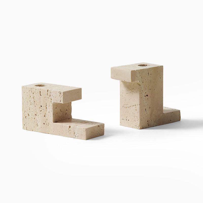 Stige Travertine Candleholder Sets