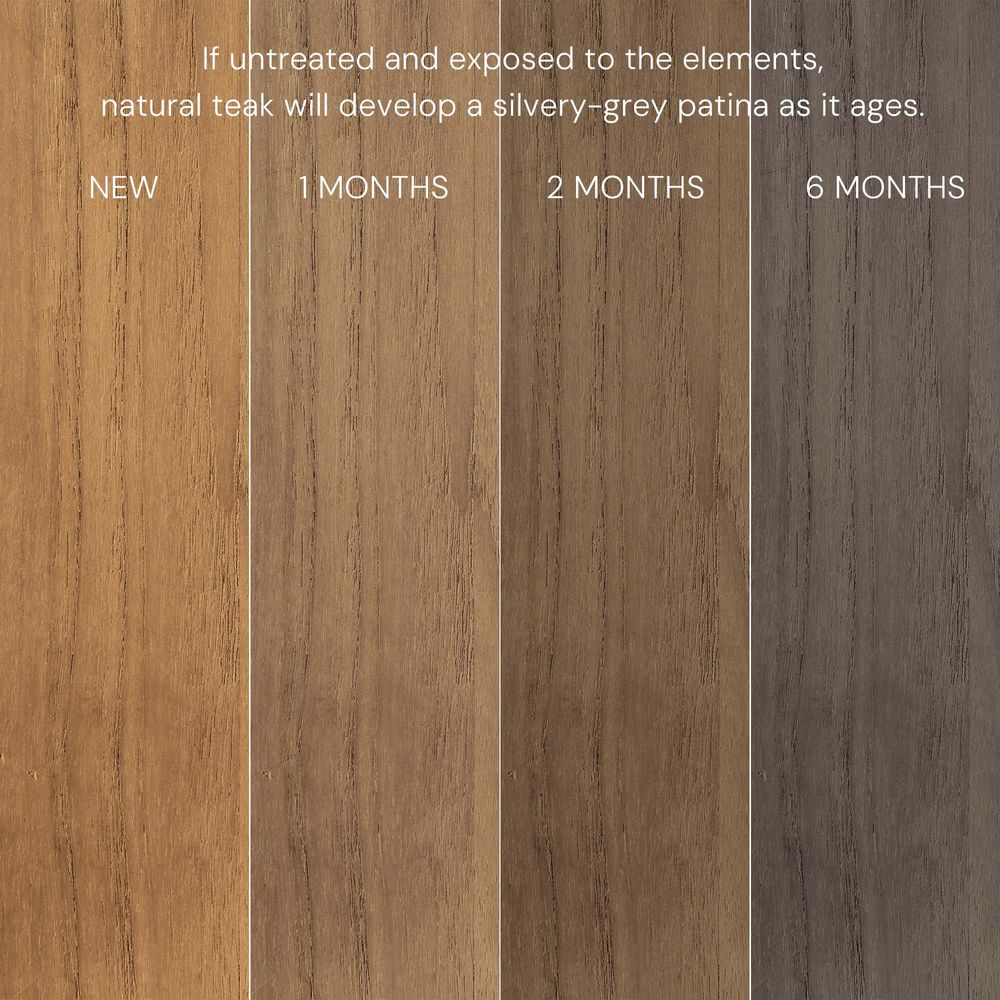 The solid wood frame features a tripod structure, where two softly curved, porch-shaped frames are bridged by solid beams, creating a design that feels poised in form yet nimble in style. Crafted from FSC-certified teak wood, each piece is made to last over time, naturally developing richer tones and a unique patina through everyday use.