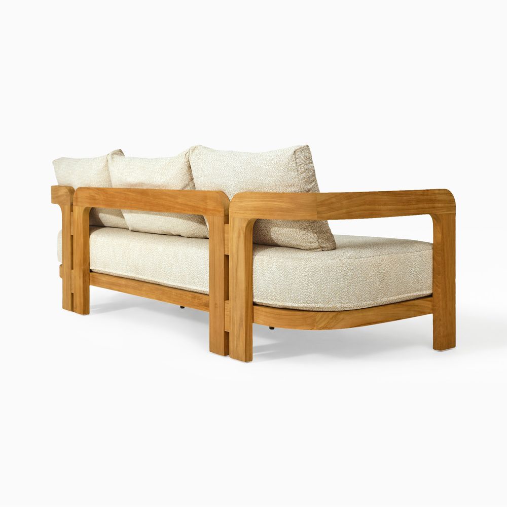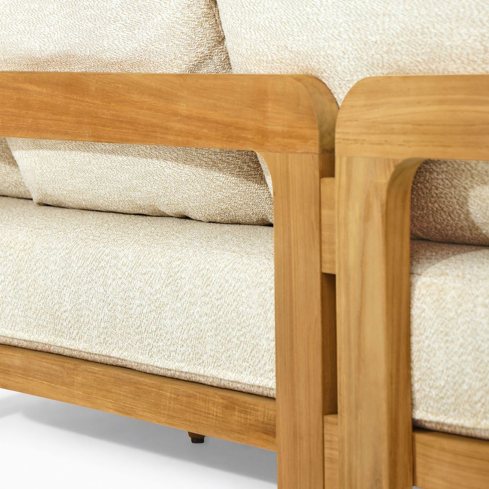 Set consists of 1 sofa 2 lounge chair and 1 coffee tableCrafted of Grade-AB, FSC-certified Indonesian teak wood, chosen for its natural beauty, durability, and responsible origins.Expertly sanded to an ultra-smooth, silky finish—uncoated, so the natural beauty of pure teak shines through. Teak is kiln-dried for added durability.Crafted with precision tenon-mortised joinery for superior sturdiness and weight-bearing strength.Includes threaded leveling feet for stability on uneven surfaces.Removable cushions feature high-resiliency foam wrapped in soft, easy-care recycled polyester.Cushions secure with Velcro to stay in place on windy days.
