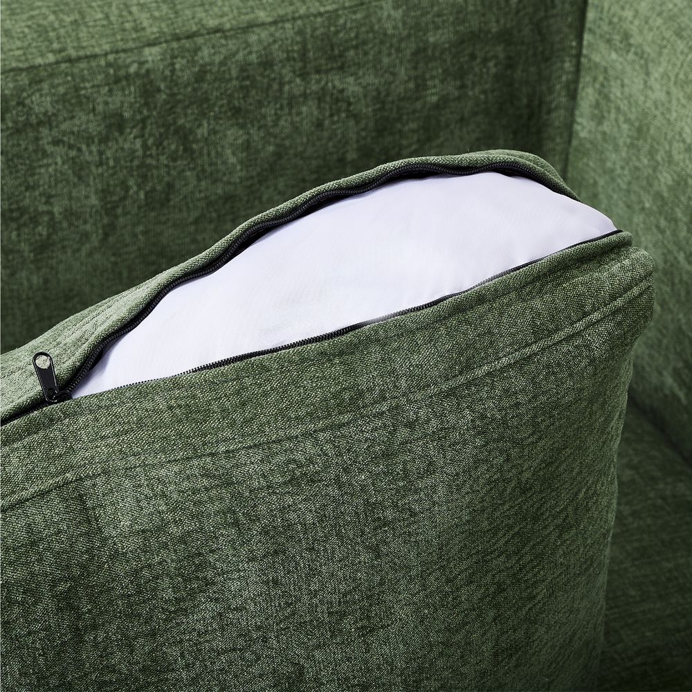 American solid oak and plywood frame.Cotton fabric is breathable, soft, durable, and easy to care for.Seat cushions have fiber-wrapped, high-resiliency polyurethane foam cores.Sinuous spring suspension with reinforced elastic webbing.The upholstery on the sofa adds soft padding for cozy, stylish seating surfaces.Cushion covers unzip to remove.91" sofa designed for 3-4 people's gathering, 2 throw pillows and 2 lumbar pillow are included.Items purchased at different times may not match due to different dye lots, also color perception can vary by lighting and devices.