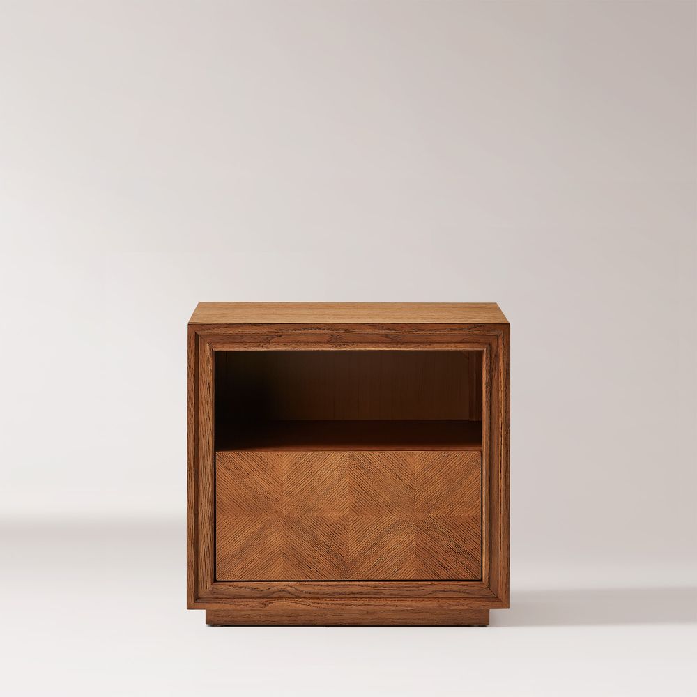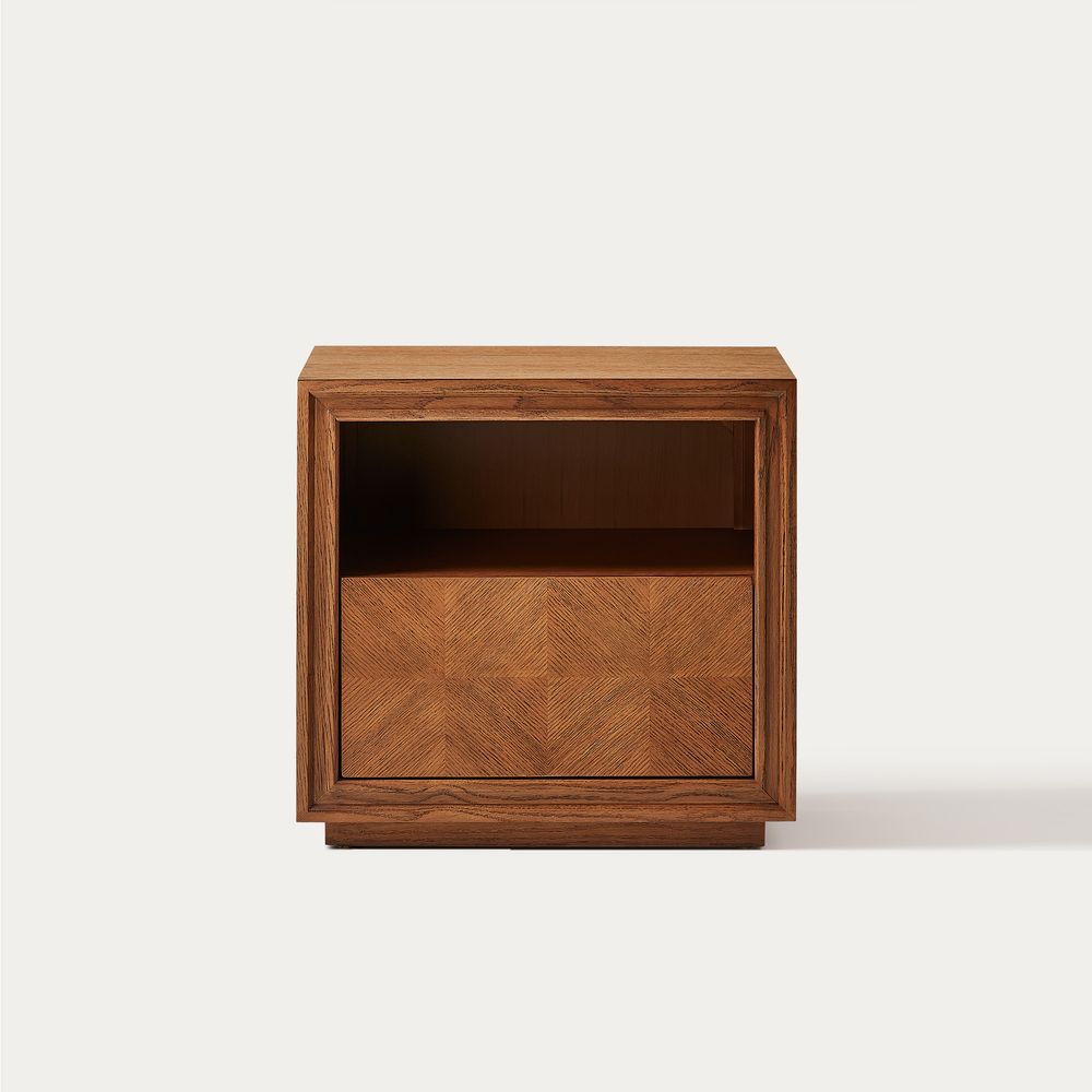 Thursen collection showcases the intricate parquet pattern, blending classic craftsmanship with modern design. Each piece reflects sophistication, with geometric wooden grids creating a striking visual harmony.