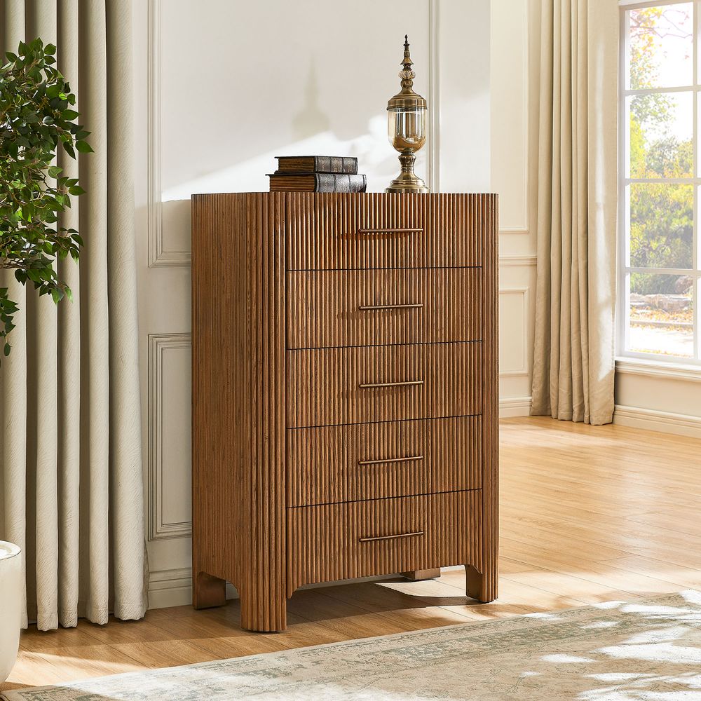 Alexa 34" Fluted 5-Drawer Oak Chest