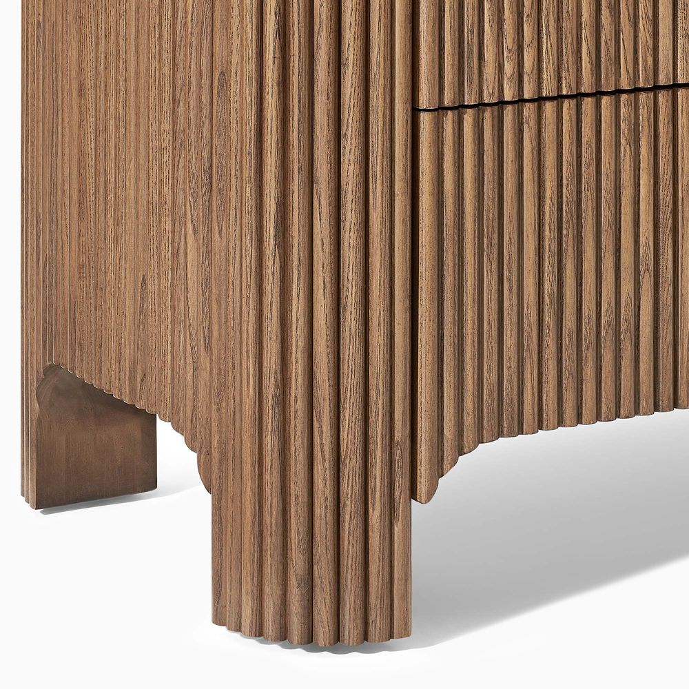 Crafted of American solid ash wood, engineered wood with solid wood veneers.All wood is kiln-dried for added durability.Finish is achieved through multistep process in which wood is wire brushed to highlight its rich grain.Wood glazing adds visual interest with greater depth and layering and enhances coloring.Solid wood blocks are used at structural joints for reinforcement.Drawers are crafted with precision dovetail joints for superior sturdiness and weight-bearing strength.Anti-tip kit hardware (included) is highly recommended to provide protection against tipping of furniture.Color perception may vary due to wood characteristics, lighting, and devices. Wood grain variation is expected, as each is unique.