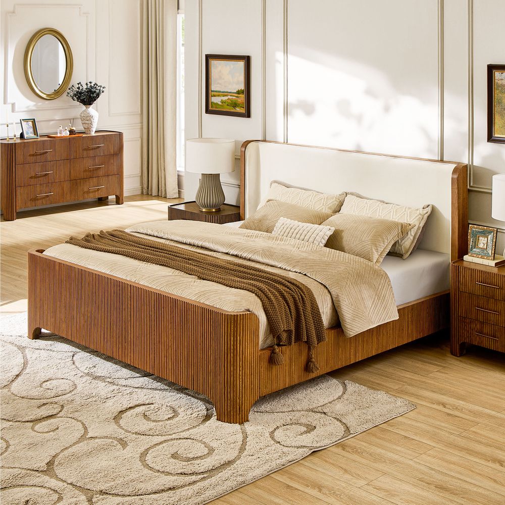 Fluted Solid Oak Bed