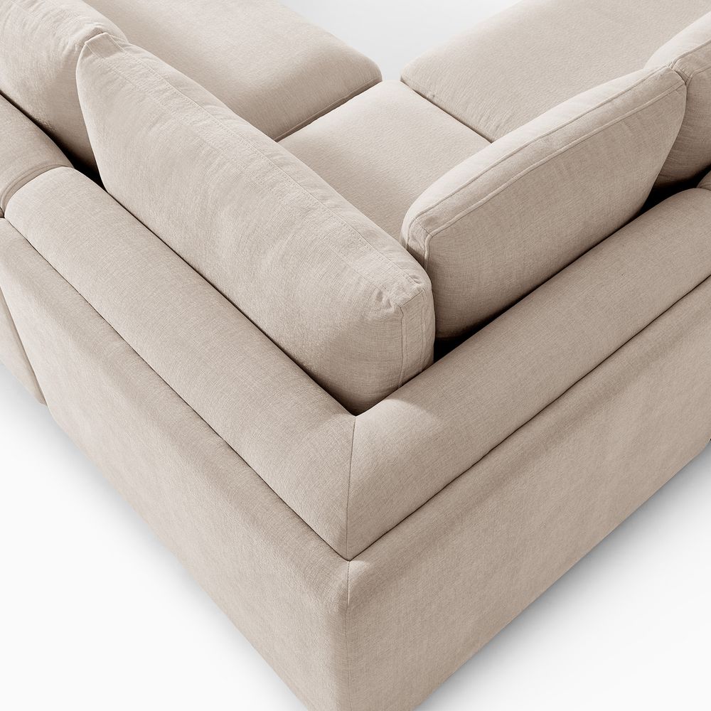 Preconfigured sofa consists of 1 two-seater right armchair, 1 corner chair and 1 two-seater left armchair.American solid ash wood and plywood frame.Cotton fabric is breathable, soft, durable, and easy to care for.Seat cushions have fiber-wrapped, high-resiliency polyurethane foam cores.Sinuous spring suspension with reinforced elastic webbing.The upholstery on the sofa adds soft padding for cozy, stylish seating surfaces.Cushion covers unzip to remove.Items purchased at different times may not match due to different dye lots, also color perception can vary by lighting and devices.