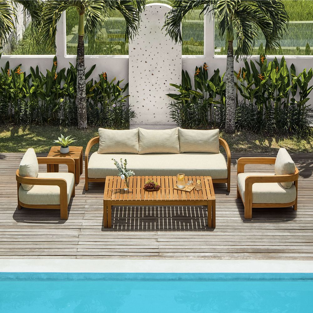 Fine-sanded teak reveals its own natural beauty in every piece.
