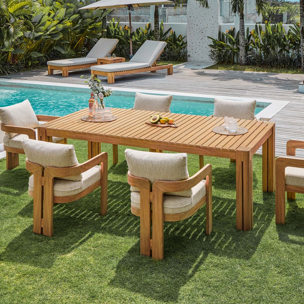 Fine-sanded teak reveals its own natural beauty in every piece.