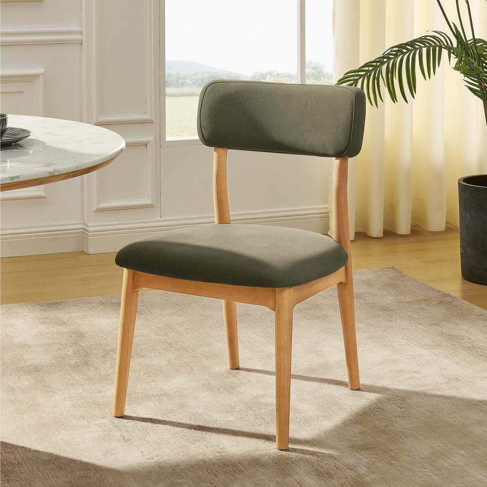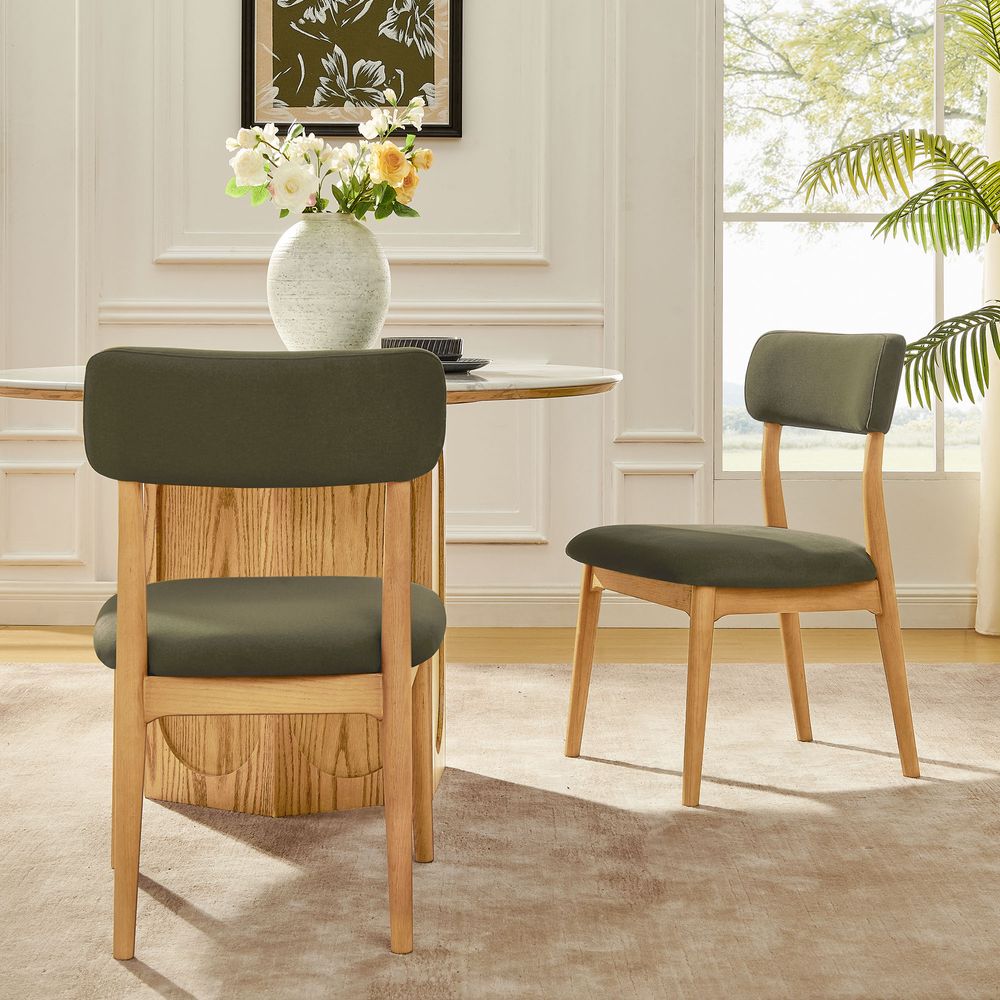 Frame crafted of American solid oak and plywood.All wood is kiln-dried for added durability.Durable, tightly woven fabric with a rich texture and natural stain resistance.Wood glazing adds visual interest with greater depth and layering and enhances coloring.Seat and back are generously padded with high-resiliency foam.The upholstery on the chair provides soft padding for a cozy and stylish seating surface.Supporting up to 330 lbs.Color perception may vary due to wood characteristics, lighting, and devices. Wood grain variation is expected, as each is unique.Items purchased at different times may not match due to different dye lots, also color perception can vary by lighting and devices.
