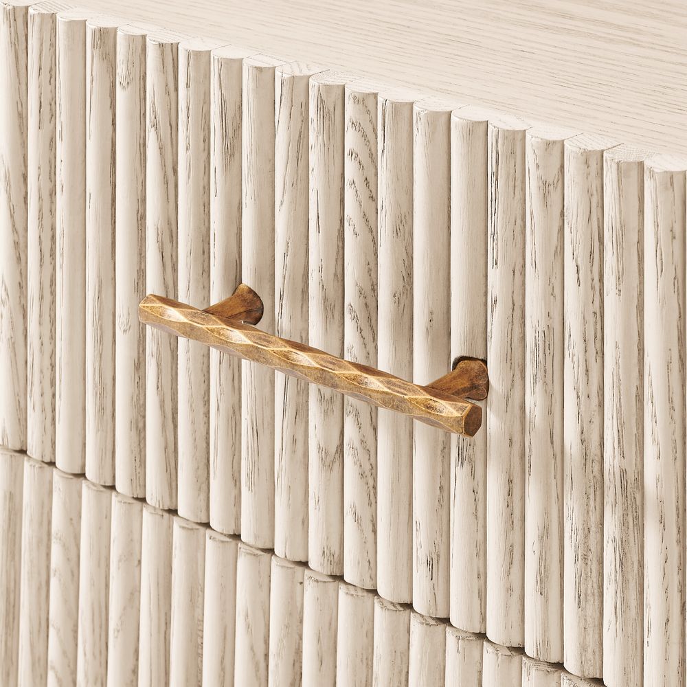 Crafted of solid wood and engineered wood with elm veneers.All wood is kiln-dried for added durability.Finish is achieved through multistep process in which wood is wire brushed to highlight its rich grain.Drawer is crafted with precision dovetail joints for superior sturdiness and weight-bearing strength.Solid wood blocks are used at structural joints for reinforcement.Solid wood fluting presents a natural texture.Color perception may vary due to wood characteristics, lighting, and devices. Wood grain variation is expected, as each is unique.