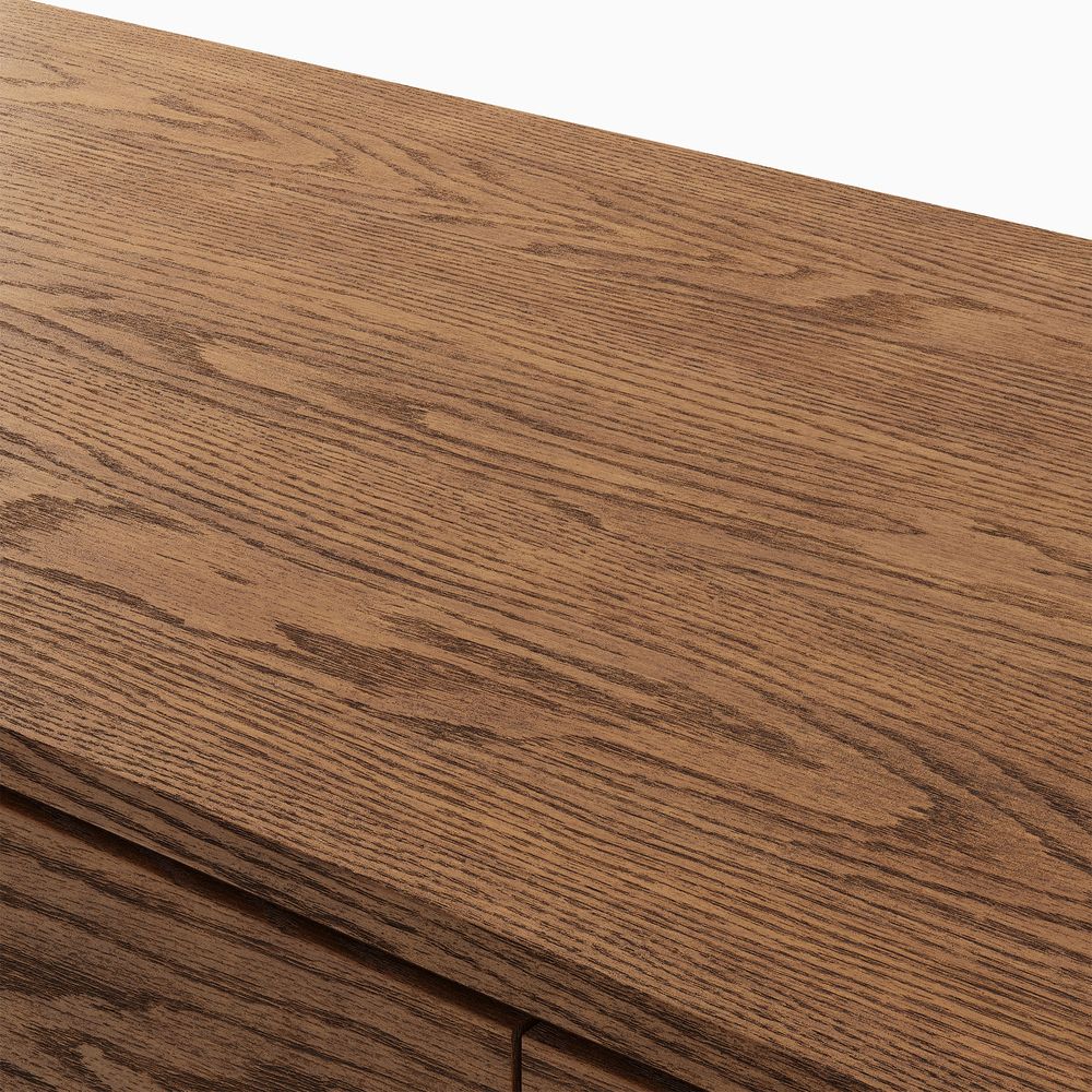 Crafted of solid wood and plywood with American oak veneers.All wood is kiln-dried for added durability.Wood glazing adds visual interest with greater depth and layering and enhances coloring.Solid wood blocks are used at structural joints for reinforcement.Drawers are crafted with precision dovetail joints for superior sturdiness and weight-bearing strength.Color perception may vary due to wood characteristics, lighting, and devices. Wood grain variation is expected, as each is unique.