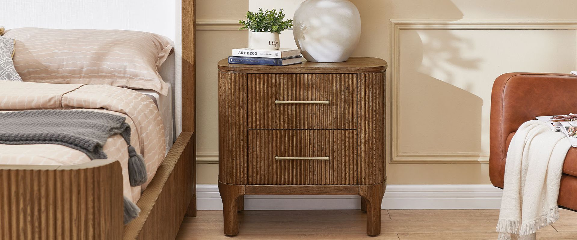 Crafted of American solid oak and engineered wood with oak veneers.All wood is kiln-dried for added durability.Finish is achieved through multistep process in which wood is wire brushed to highlight its rich grain.Solid wood fluting presents a natural texture.Drawers are crafted with precision dovetail joints for superior sturdiness and weight-bearing strength.Solid wood blocks are used at structural joints for reinforcement.Color perception may vary due to wood characteristics, lighting, and devices. Wood grain variation is expected, as each is unique.