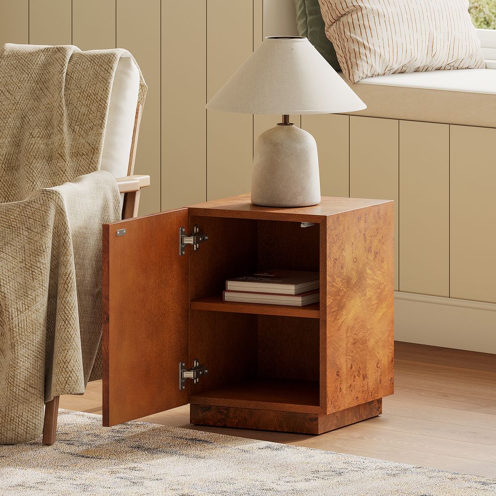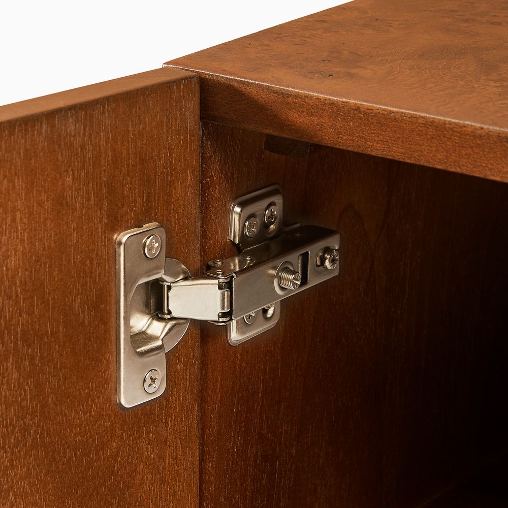 Crafted of engineered wood with burl veneers.Burl finishes create stunning visual interest and texture.Made from natural materials may vary in pattern, shape and texture, making each truly unique.Solid wood blocks are used at structural joints for reinforcement.Color perception may vary due to wood characteristics, lighting, and devices. Wood grain variation is expected, as each is unique.