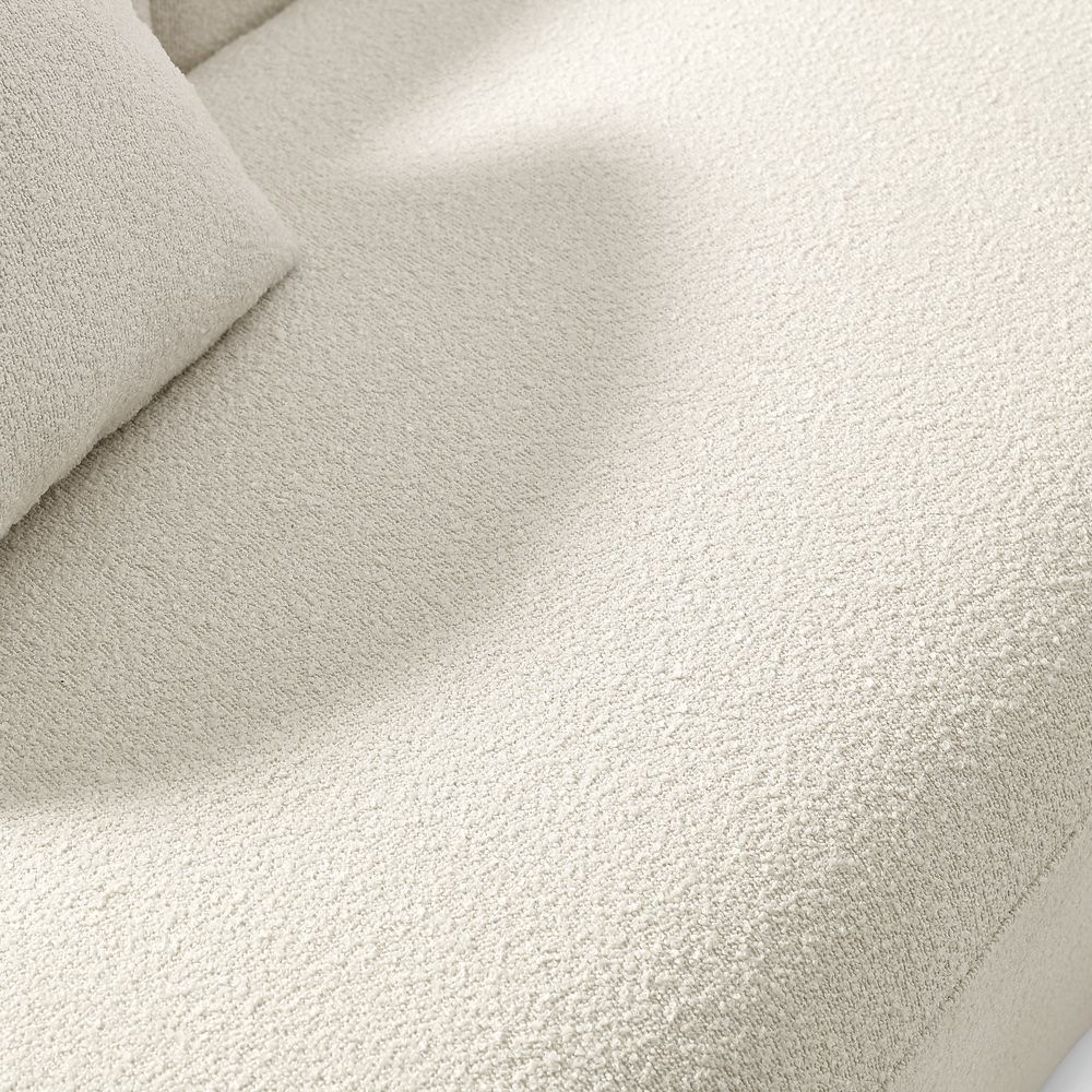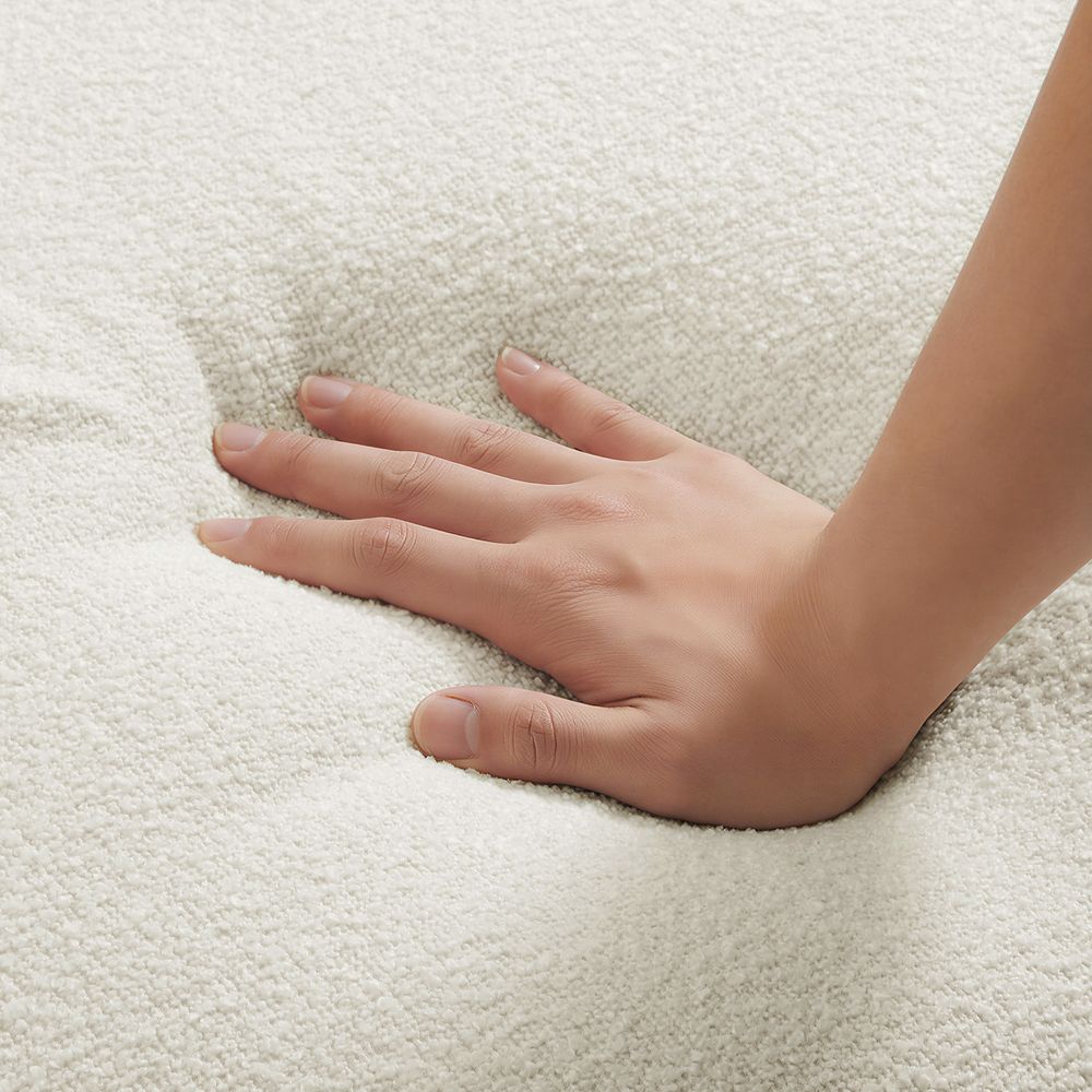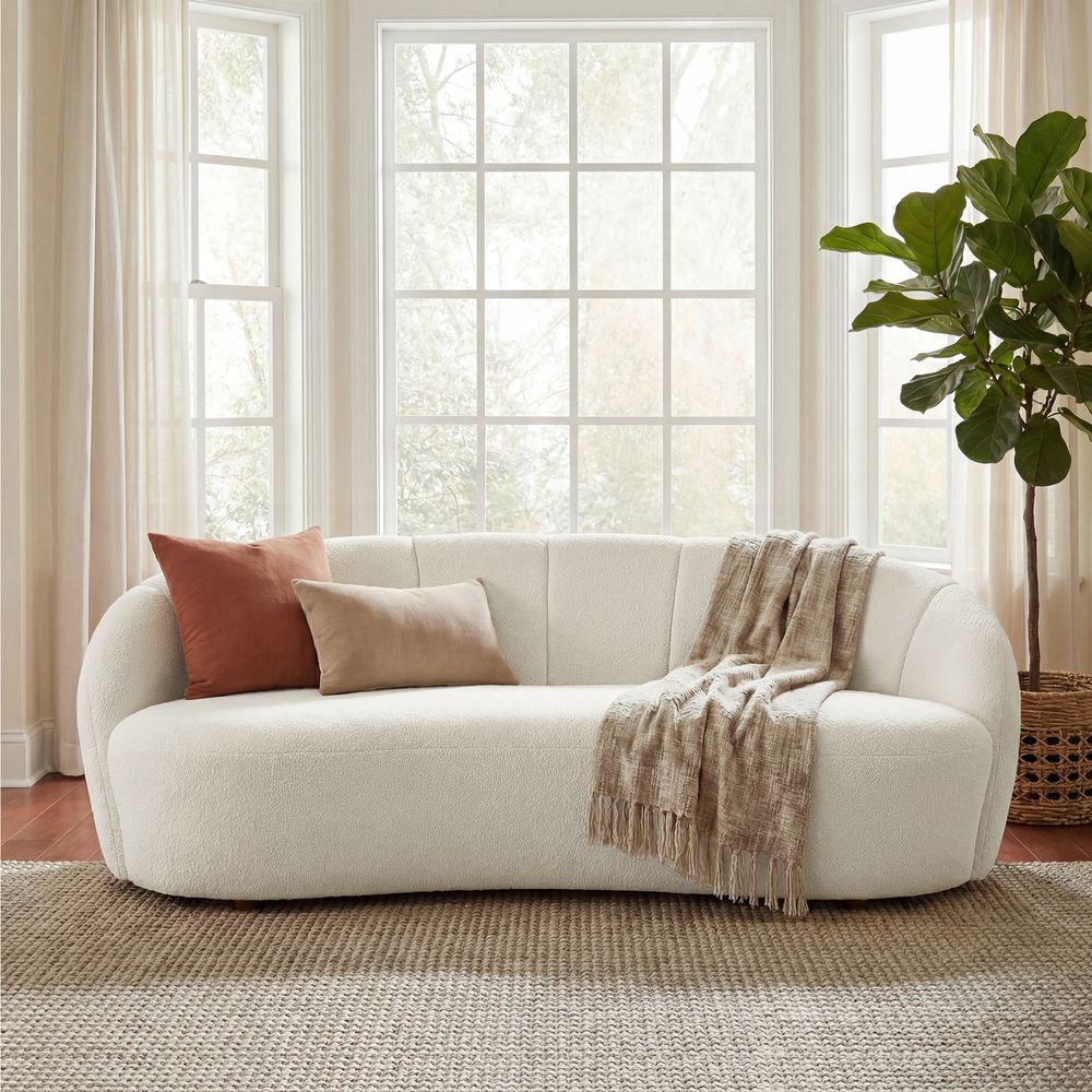American solid ash wood and plywood frame.Bouclé fabric with spill-resistant and gives it a super soft handfeel.Seat cushions have fiber-wrapped, high-resiliency polyurethane foam cores.Sinuous spring suspension with reinforced elastic webbing.The upholstery on the sofa adds soft padding for cozy, stylish seating surfaces.84" sofa designed for 3-4 people's gathering.2 throw pillows are included.Items purchased at different times may not match due to different dye lots, also color perception can vary by lighting and devices.