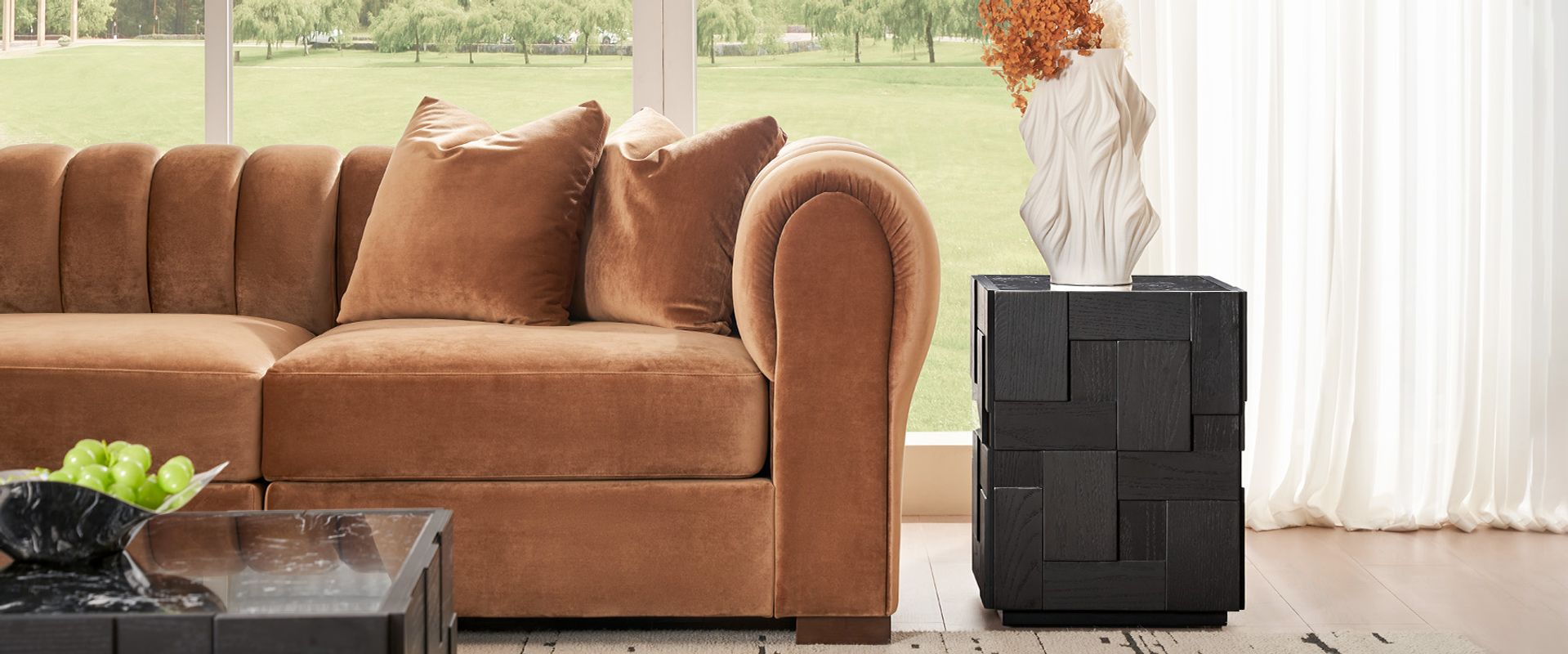 Crafted of engineered stone, plywood and solid wood with American oak veneers.All wood is kiln-dried for added durability.Finish is achieved through multistep process in which wood is wire brushed to highlight its rich grain.Panel is hand-crafted from solid wood blocks featuring a cross-grain pattern.Raised and recessed wood surface creates a three-dimensional floating visual effect.Countertop are honed and sealed for a satin finish with deep veining and natural color contrasts.Color perception may vary due to wood characteristics, lighting, and devices. Wood grain variation is expected, as each is unique.