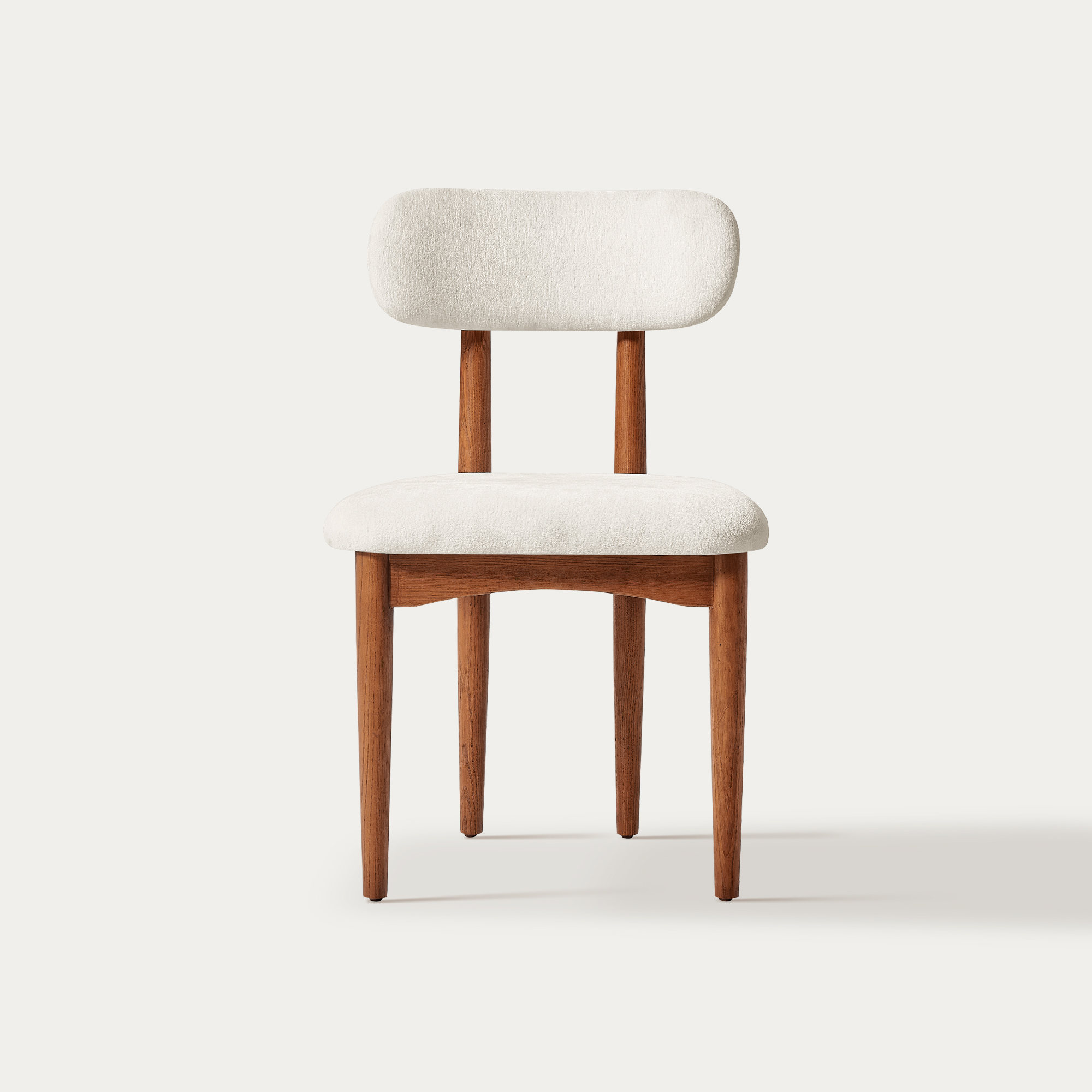 The Elin chair is defined by a bold yet balanced use of materials. We pair plush, textured fabrics—including our signature white chenille—with richly finished wooden frames to create visual depth and tactile appeal. With its focus on clean silhouettes and luxurious comfort, Elin transforms any meal into an elevated experience.