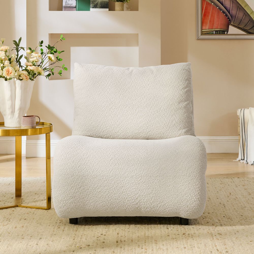 Solid wood and plywood frame.Bouclé fabric with spill-resistant and gives it a super soft handfeel.Seat cushions have fiber-wrapped, high-resiliency polyurethane foam cores.The upholstery on the chair adds soft padding for cozy, stylish seating surfacesItems purchased at different times may not match due to different dye lots, also color perception can vary by lighting and devices