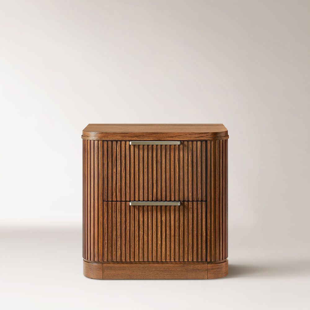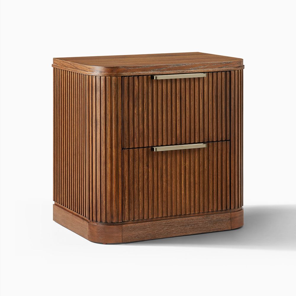 Finnley bedroom collection artfully merges modern sophistication with vintage maximalist charm. Crafted from rich poplar wood veneer and a poplar wood frame, it provides lasting durability and timeless elegance. Featuring a striking vertical fluted design, this refined collection enhances any space with a harmonious blend of bold style and meticulous craftsmanship.