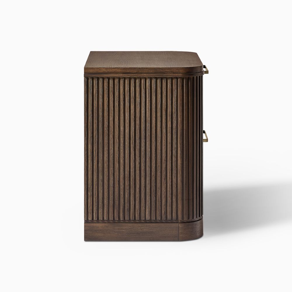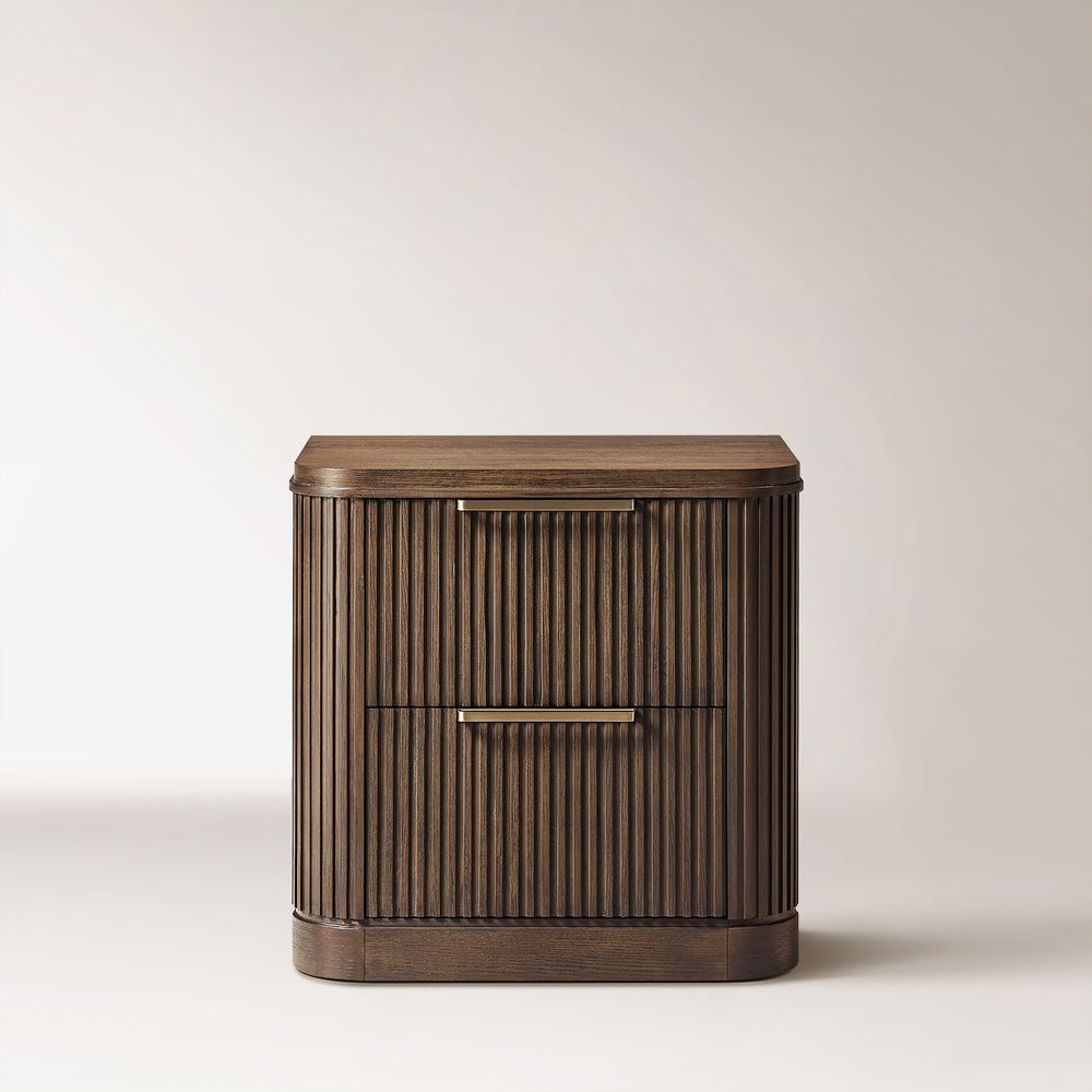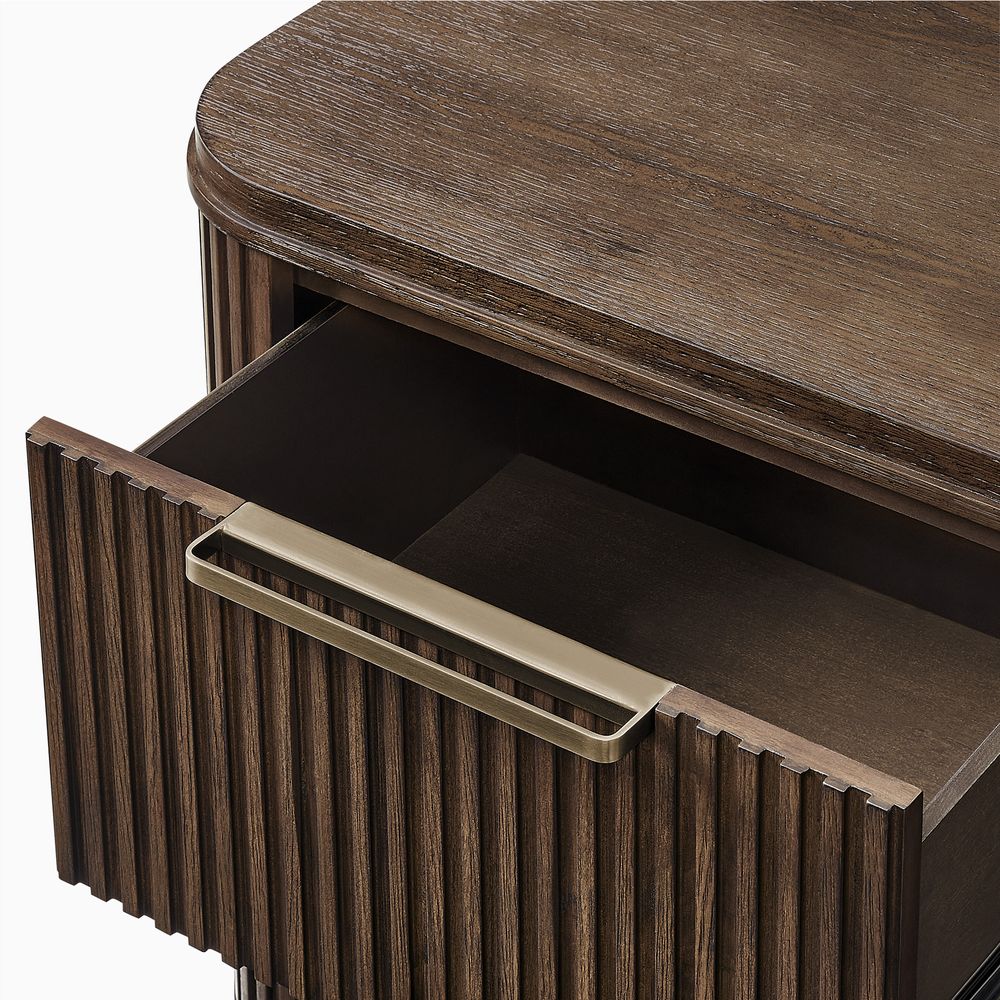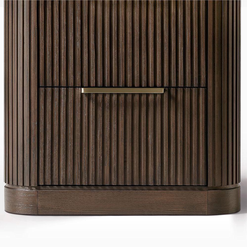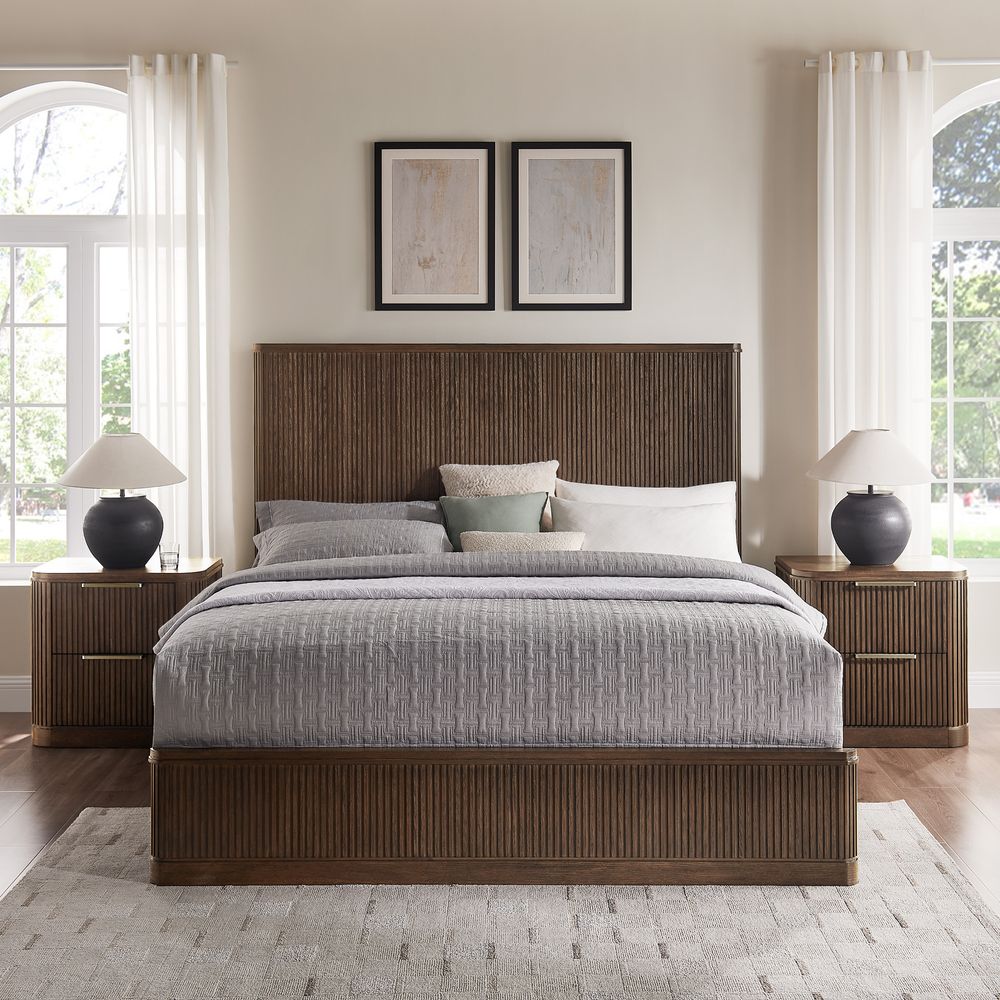 Finnley bedroom collection artfully merges modern sophistication with vintage maximalist charm. Crafted from rich poplar wood veneer and a poplar wood frame, it provides lasting durability and timeless elegance. Featuring a striking vertical fluted design, this refined collection enhances any space with a harmonious blend of bold style and meticulous craftsmanship.