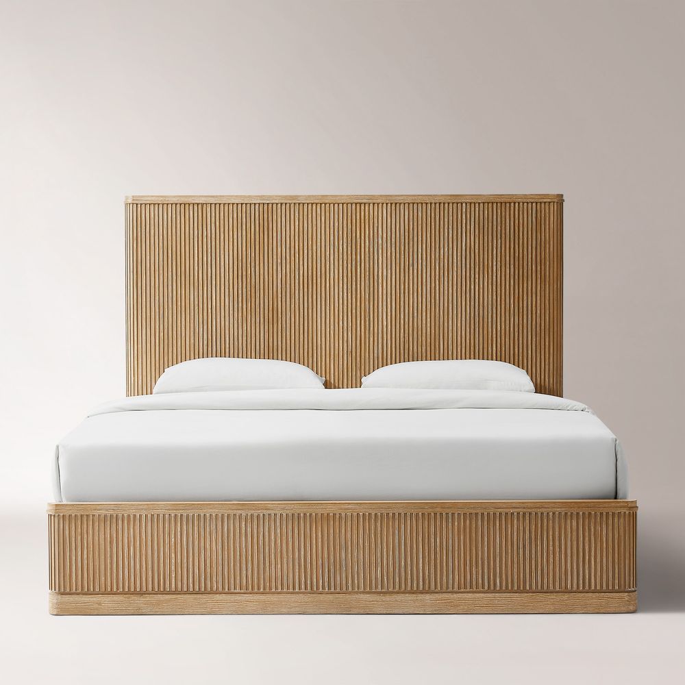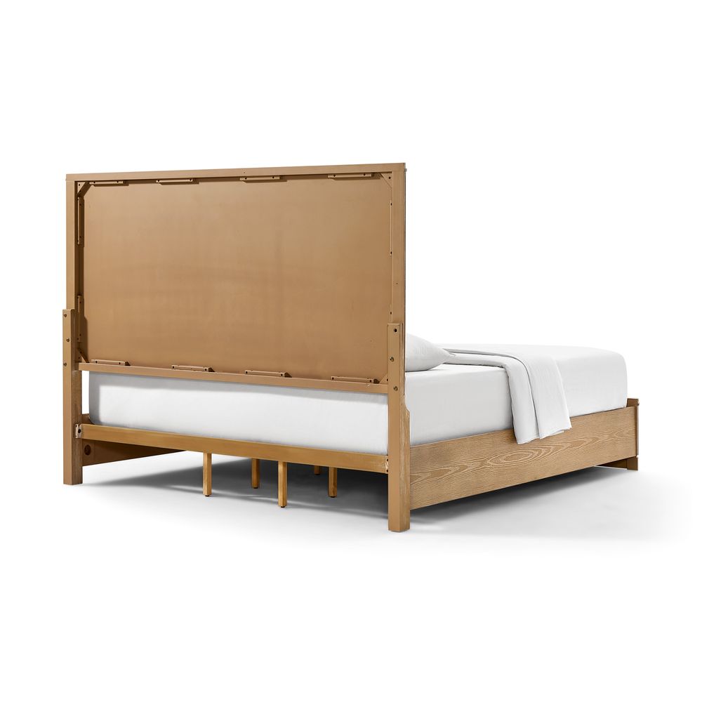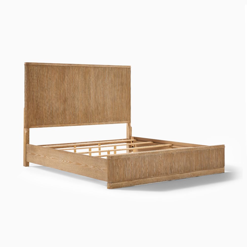 Crafted of solid poplar wood and engineered wood with poplar wood veneers.All wood is kiln-dried for added durability.Finish is achieved through multistep process in which wood is wire brushed to highlight its rich grain.Solid wood fluting presents a natural texture.Include 10 middle support legs.Bed accommodates most standard mattresses, box spring optional, supporting up to 800 lbs.Color perception may vary due to wood characteristics, lighting, and devices. Wood grain variation is expected, as each is unique.