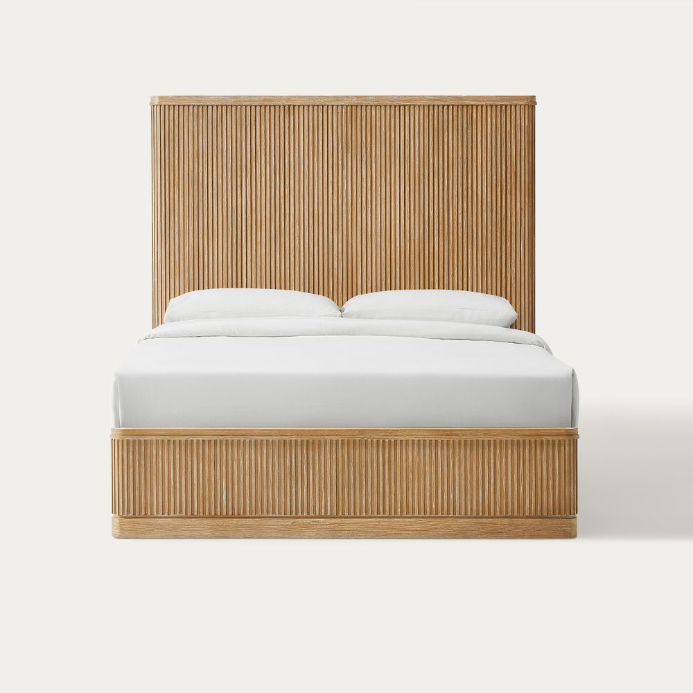 Crafted of solid tulipwood and engineered wood with tulipwood veneers.All wood is kiln-dried for added durability.Finish is achieved through multistep process in which wood is wire brushed to highlight its rich grain.Wood glazing adds visual interest with greater depth and layering and enhances coloring.Solid wood fluting presents a natural texture.Include 5 middle support legs.Bed accommodates most standard mattresses, box spring optional, supporting up to 800 lbs.Color perception may vary due to wood characteristics, lighting, and devices. Wood grain variation is expected, as each is unique.