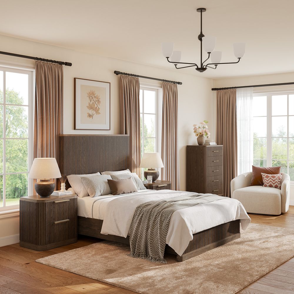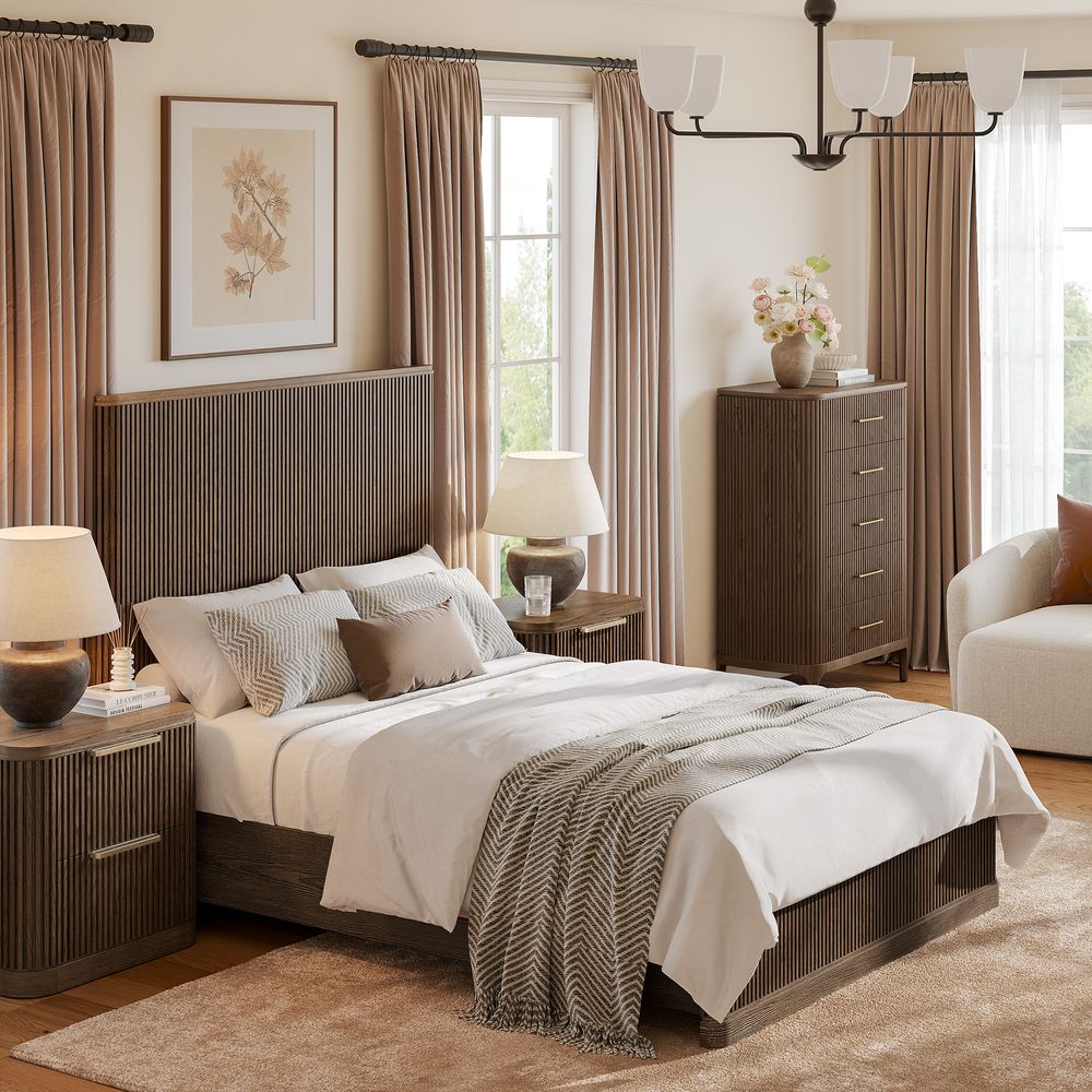 Finnley bedroom collection artfully merges modern sophistication with vintage maximalist charm. Crafted from rich tulipwood veneer and a tulipwood frame, it provides lasting durability and timeless elegance. Featuring a striking vertical fluted design, this refined collection enhances any space with a harmonious blend of bold style and meticulous craftsmanship.