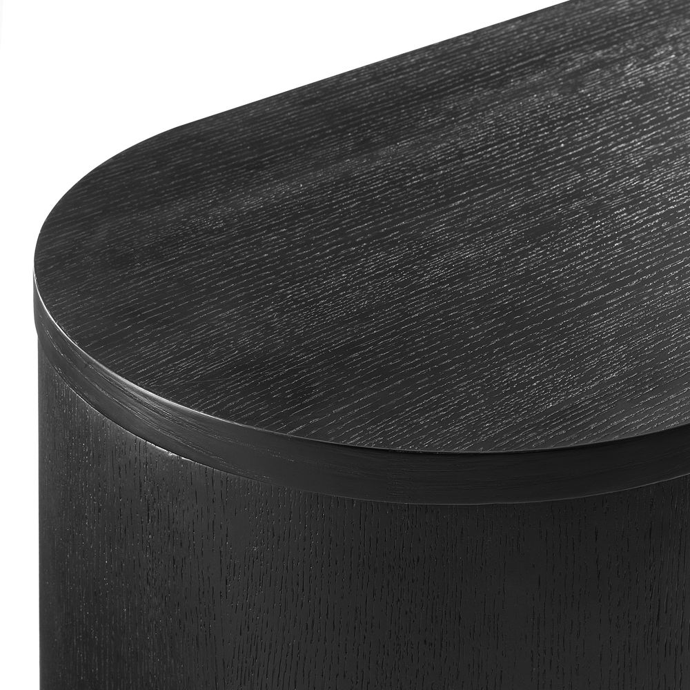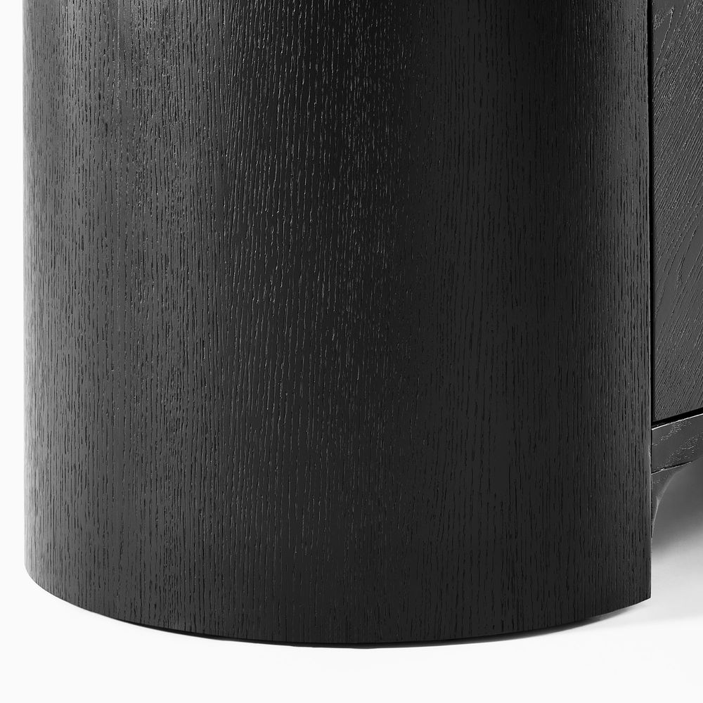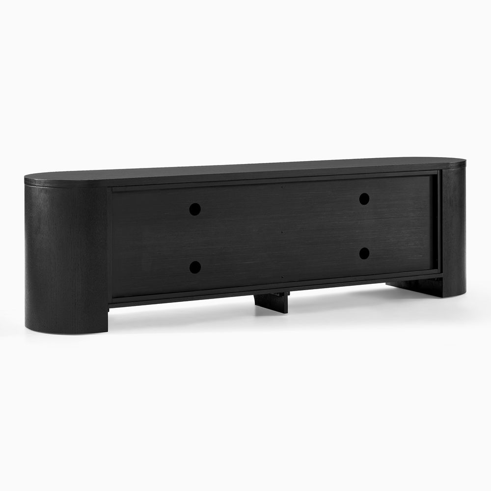 Crafted of American solid oak and engineered wood with oak veneers.All wood is kiln-dried for added durability.Finish is achieved through multistep process in which wood is wire brushed to highlight its rich grain.Solid wood blocks are used at structural joints for reinforcement.Designed for TVs up to 85", 4 cord cutouts in back panel for cable management.Color perception may vary due to wood characteristics, lighting, and devices. Wood grain variation is expected, as each is unique.