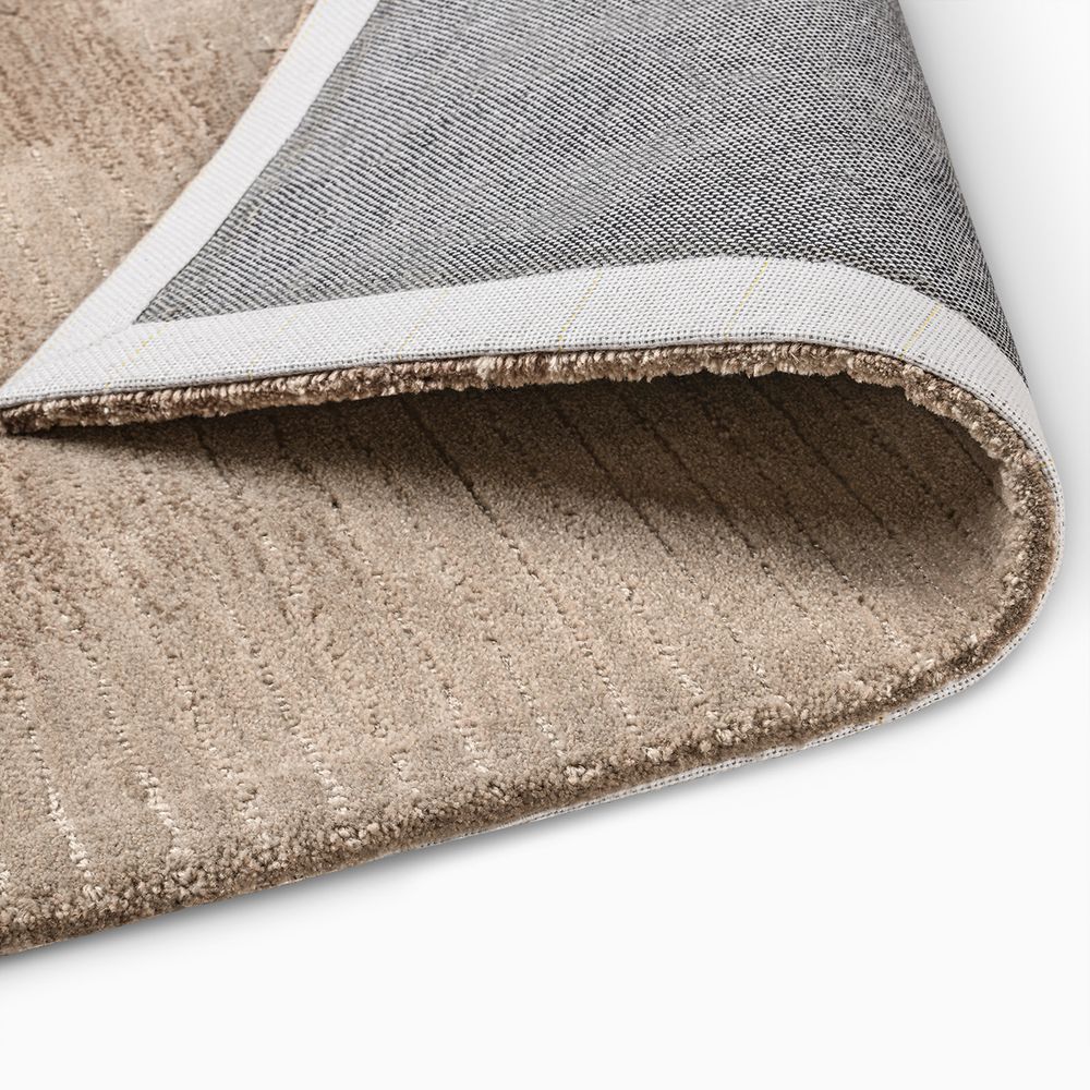 This stylish area rug boasts a chic taupe hue with a subtle, textured stripe pattern. Its plush, soft pile offers comfort underfoot, making it perfect for modern living spaces. The neutral tone complements a variety of decor styles, enhancing both contemporary and traditional interiors with a sophisticated touch.