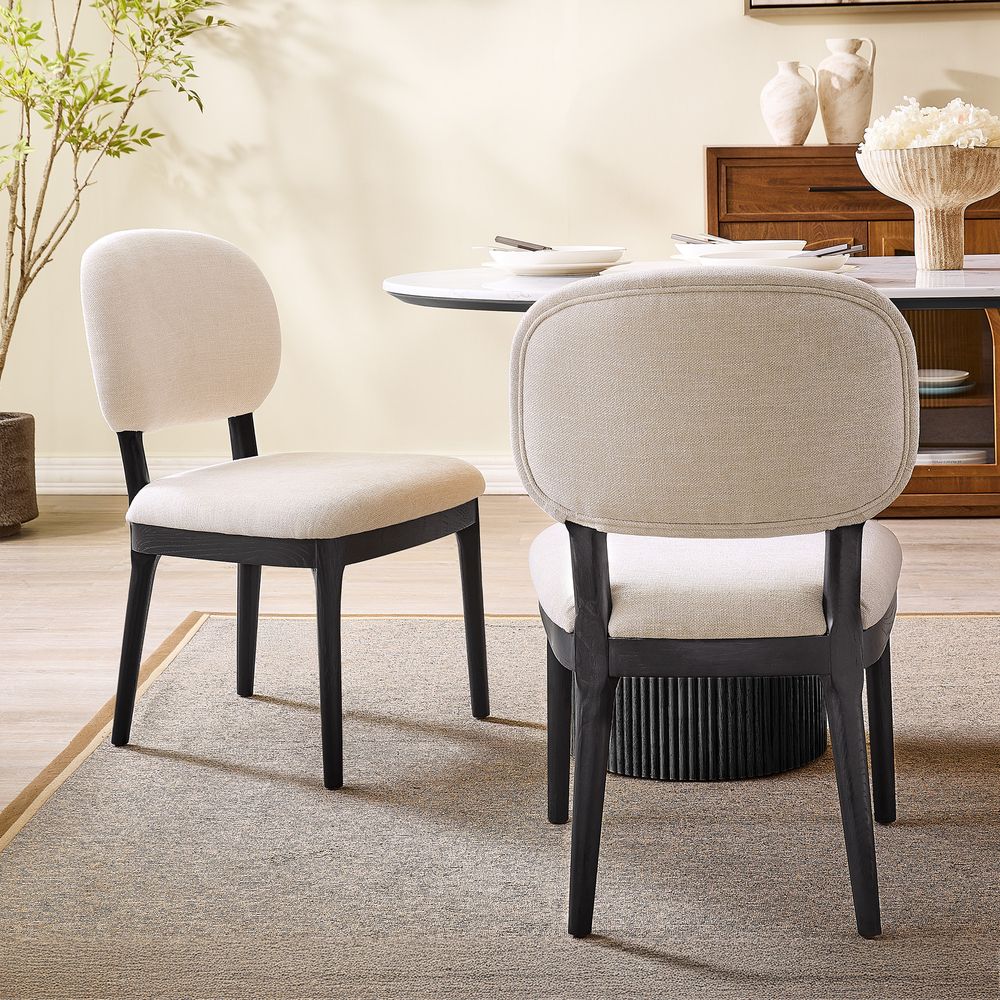 Frame crafted of American solid ash wood and plywood.All wood is kiln-dried for added durability.Durable, tightly woven fabric with a rich texture and natural stain resistance.Wood glazing adds visual interest with greater depth and layering and enhances coloring.Seat and back are generously padded with high-resiliency foam.The upholstery on the chair provides soft padding for a cozy and stylish seating surface.Supporting up to 330 lbs.Color perception may vary due to wood characteristics, lighting, and devices. Wood grain variation is expected, as each is unique.Items purchased at different times may not match due to different dye lots, also color perception can vary by lighting and devices.