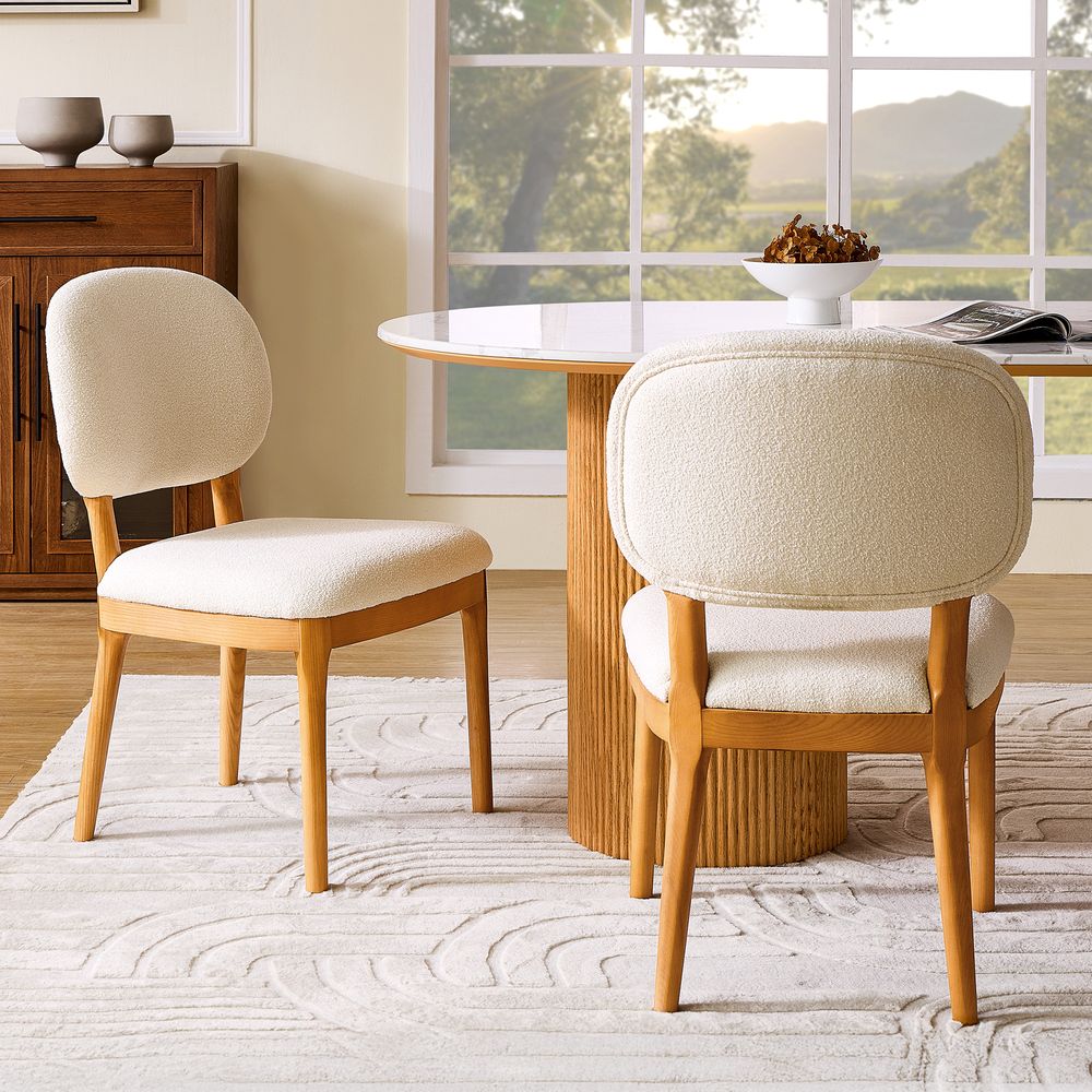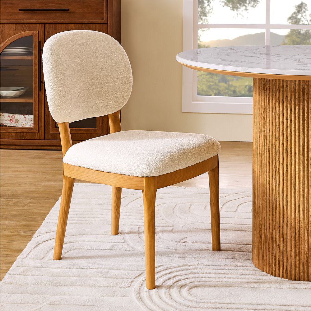 Florian features a classic design with tapered solid wood legs and a gently curved back. Soft, rounded upholstery is paired with a clean, grounded silhouette, creating a warm and welcoming presence. Well suited for modern, Scandinavian, and transitional interiors, Florian brings timeless ease to any space.