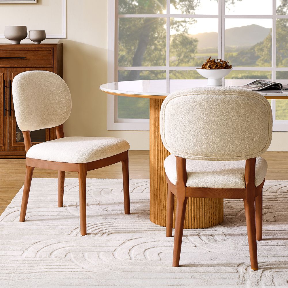 Florian features a classic design with tapered solid wood legs and a gently curved back. Soft, rounded upholstery is paired with a clean, grounded silhouette, creating a warm and welcoming presence. Well suited for modern, Scandinavian, and transitional interiors, Florian brings timeless ease to any space.