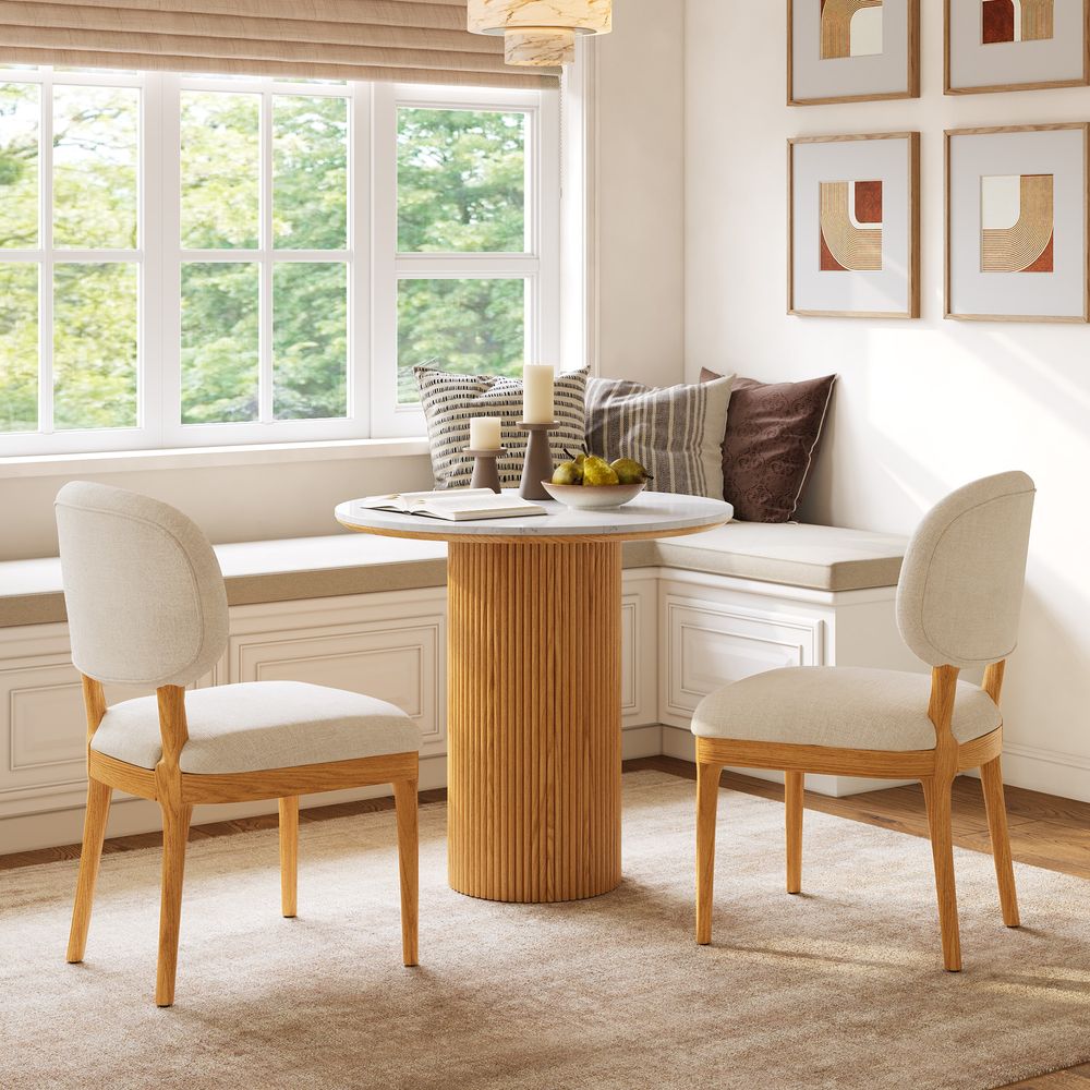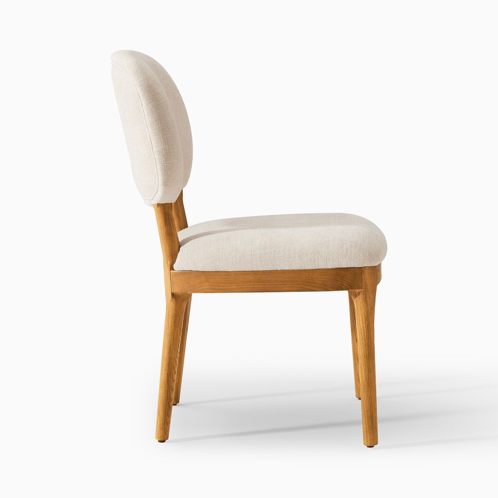 Frame crafted of American solid ash wood and plywood.All wood is kiln-dried for added durability.Durable, tightly woven fabric with a rich texture and natural stain resistance.Wood glazing adds visual interest with greater depth and layering and enhances coloring.Seat and back are generously padded with high-resiliency foam.The upholstery on the chair provides soft padding for a cozy and stylish seating surface.Supporting up to 330 lbs.Color perception may vary due to wood characteristics, lighting, and devices. Wood grain variation is expected, as each is unique.Items purchased at different times may not match due to different dye lots, also color perception can vary by lighting and devices.