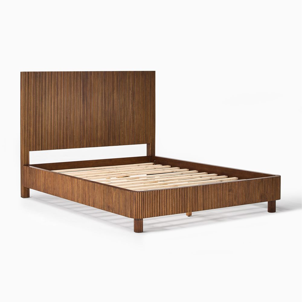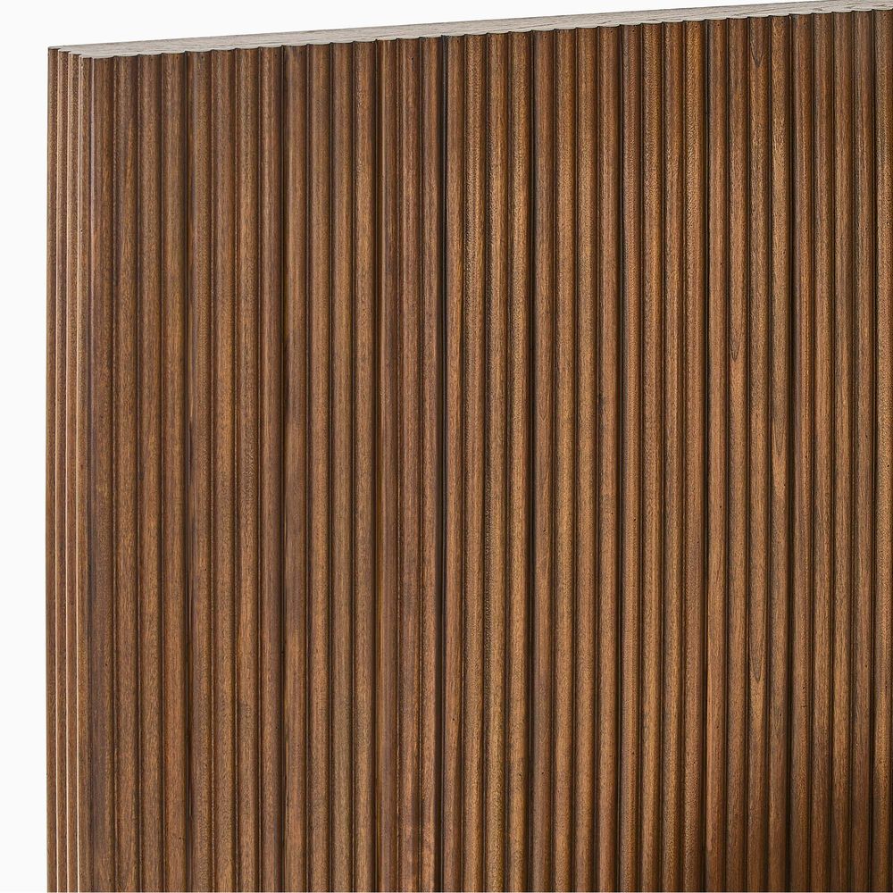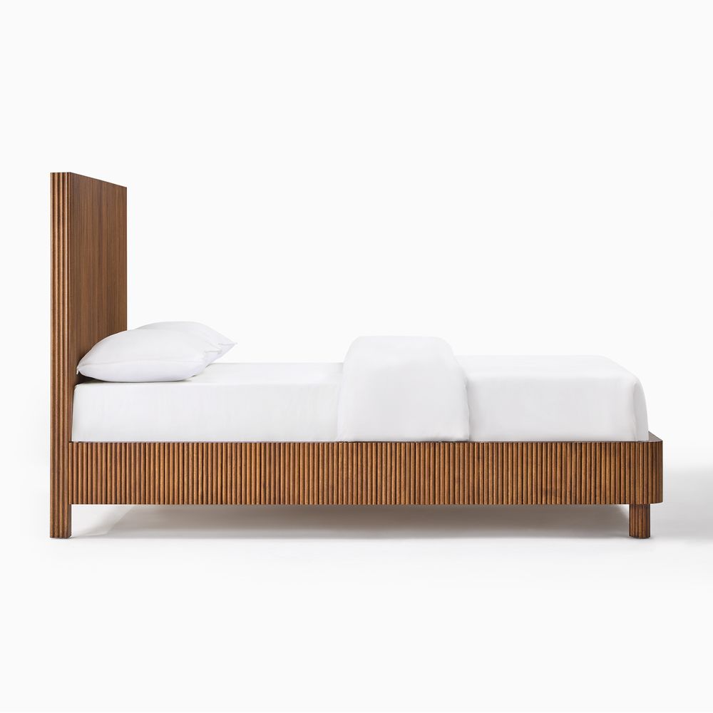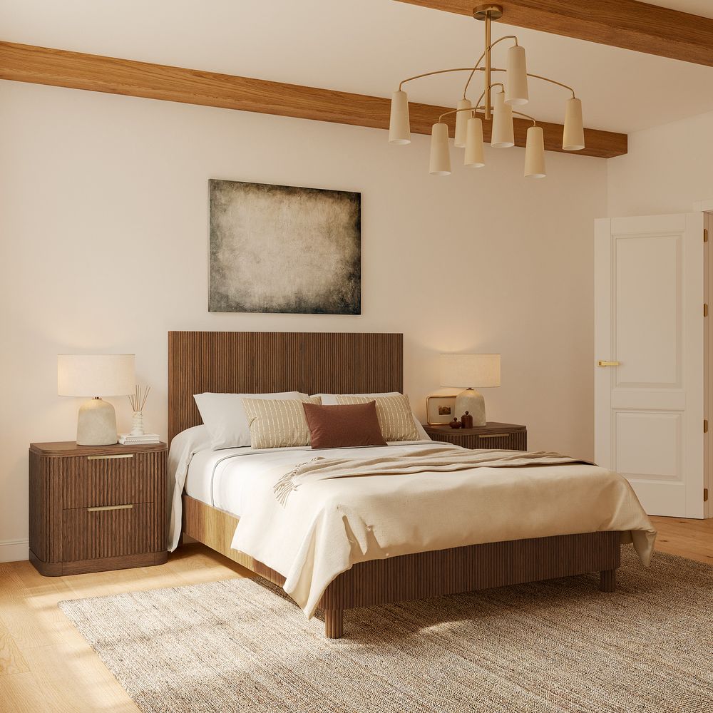 Fulton is defined by refined fluting, featuring a high-profile headboard with vertical reeding that serves as both a backdrop and the focal point of the bedroom. The reeding continues along the broad side rails, softened by rounded corners, while lifted, rounded legs echo the design language and introduce a sense of lightness and breathing room to the overall form.