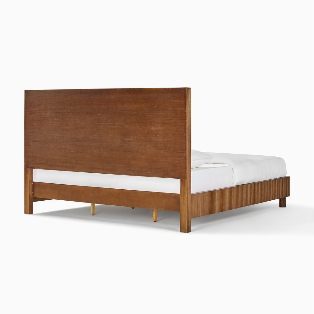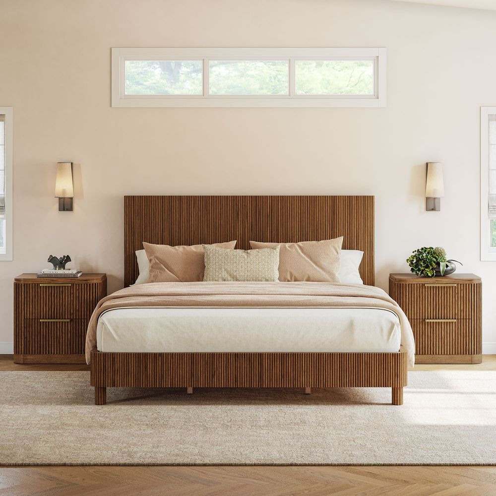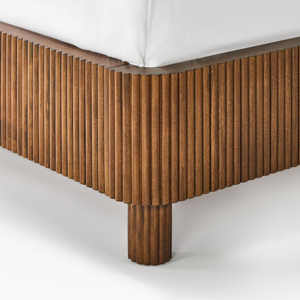 Fulton is defined by refined fluting, featuring a high-profile headboard with vertical reeding that serves as both a backdrop and the focal point of the bedroom. The reeding continues along the broad side rails, softened by rounded corners, while lifted, rounded legs echo the design language and introduce a sense of lightness and breathing room to the overall form.