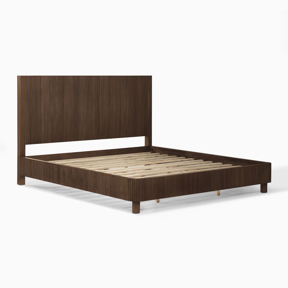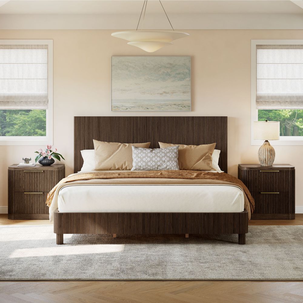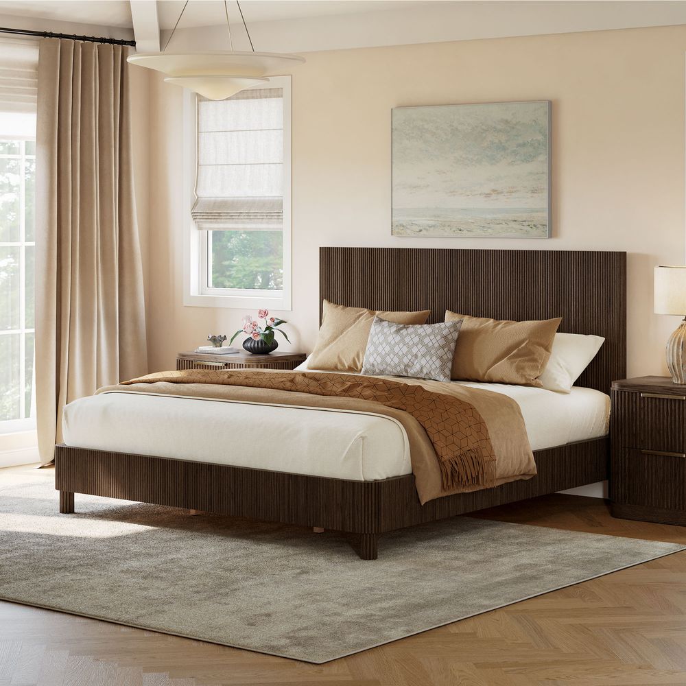 Fulton is defined by refined fluting, featuring a high-profile headboard with vertical reeding that serves as both a backdrop and the focal point of the bedroom. The reeding continues along the broad side rails, softened by rounded corners, while lifted, rounded legs echo the design language and introduce a sense of lightness and breathing room to the overall form.
