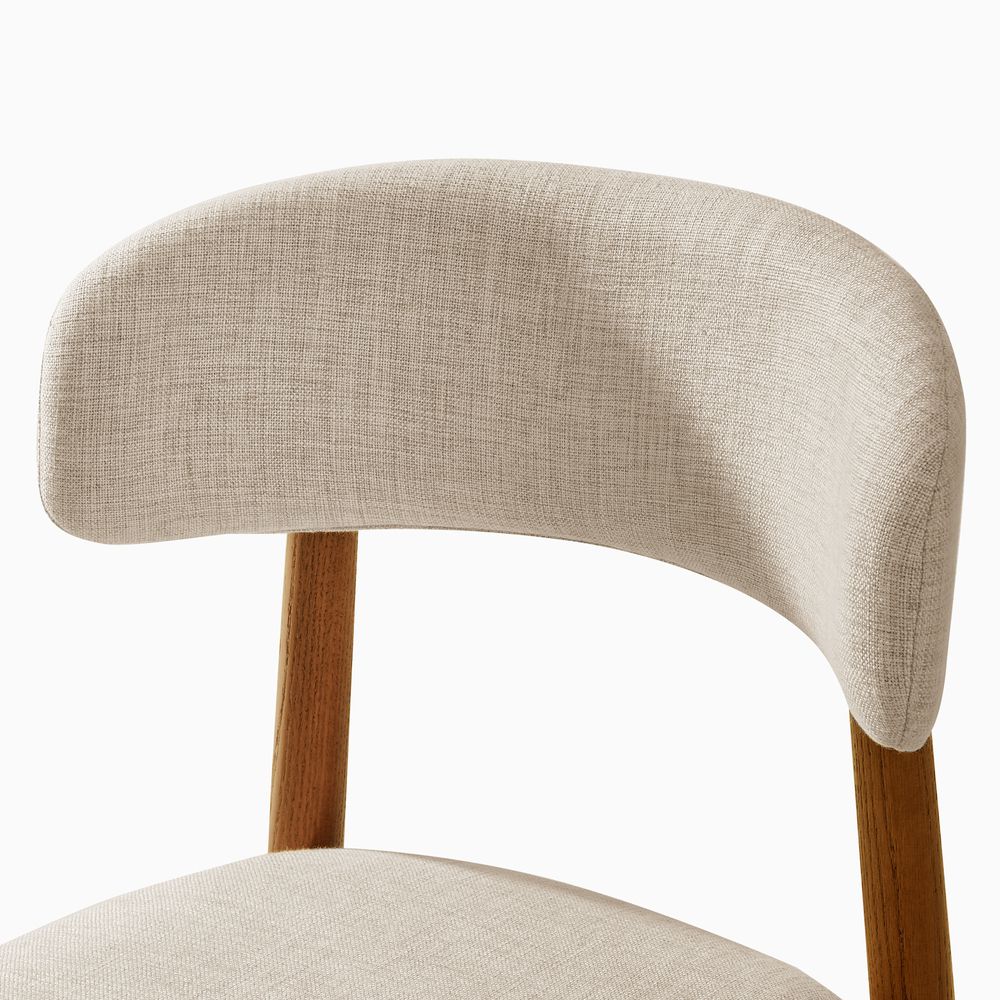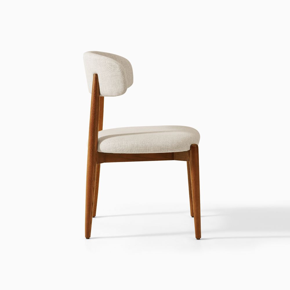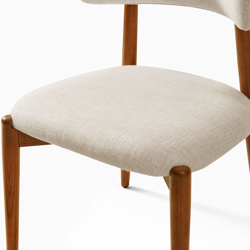 Greta is filled with mid-century modern charm, defined by slender, tapered solid wood legs that create a poised, elegant stance. The gently arched backrest wraps just enough to offer support without visual weight, while the softly padded seat cushion adds comfort and balance. The result is a silhouette that feels both graceful and grounded. With its clean lines and quiet warmth, Greta fits effortlessly into Danish, Scandinavian, organic modern, and other minimal-leaning interiors.