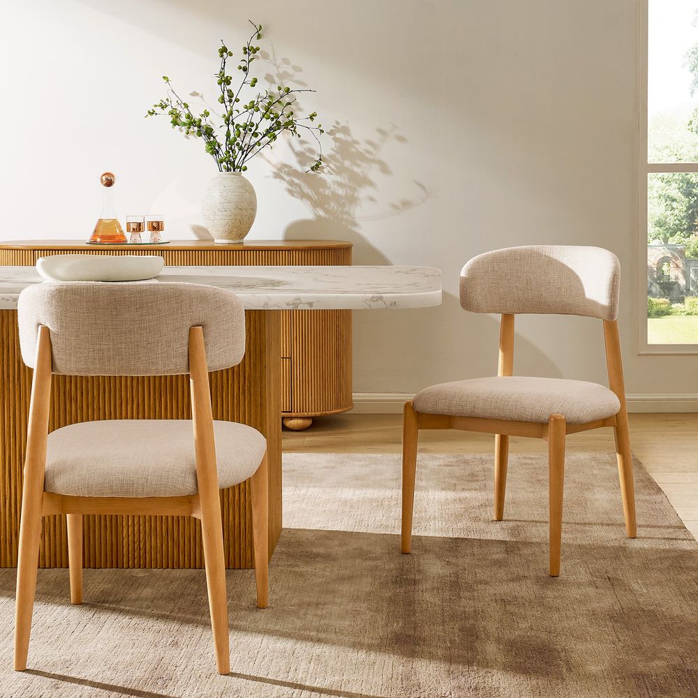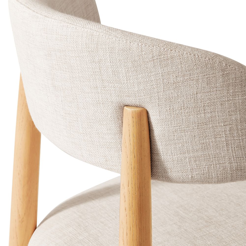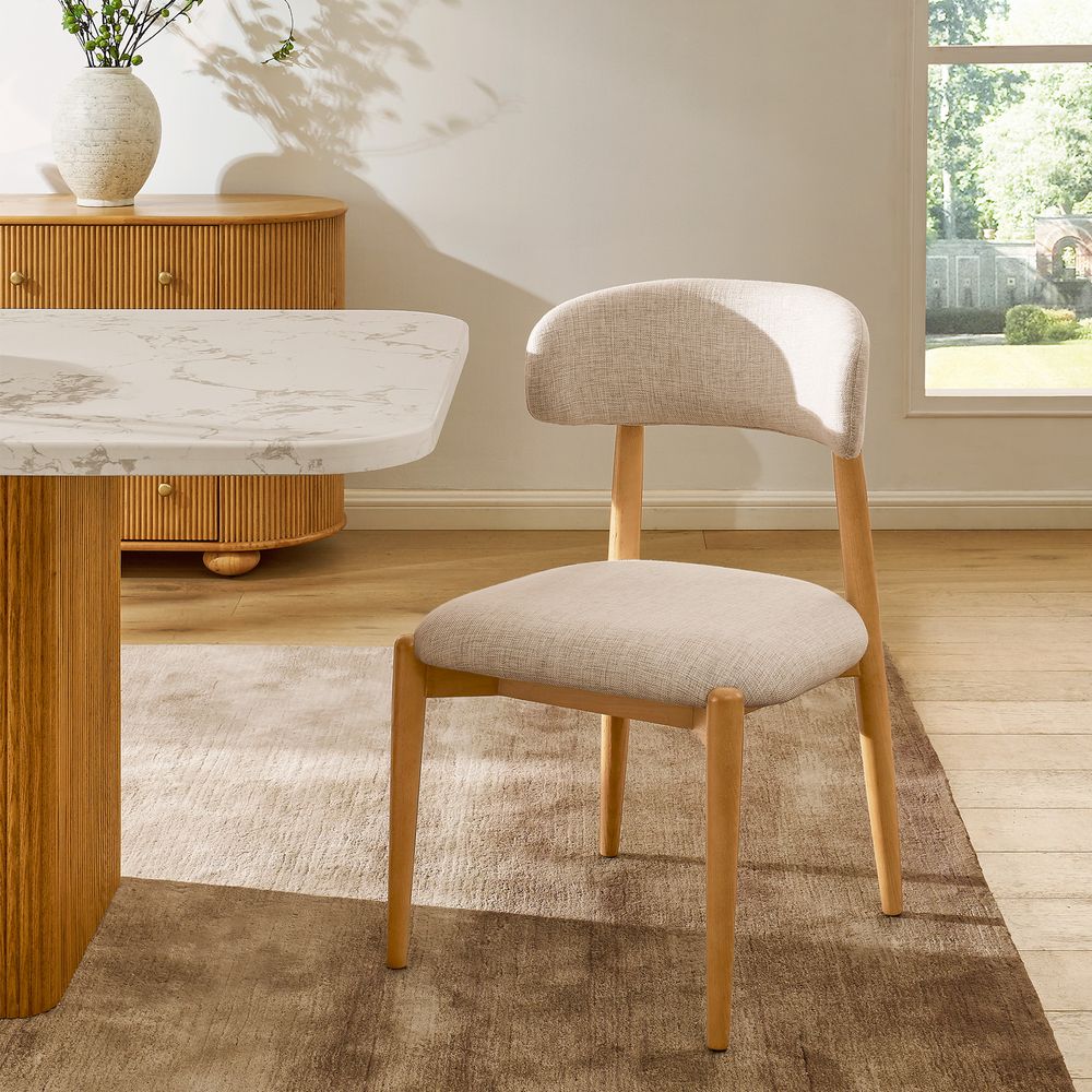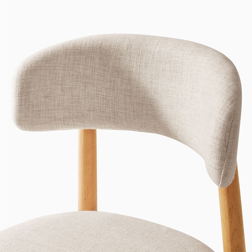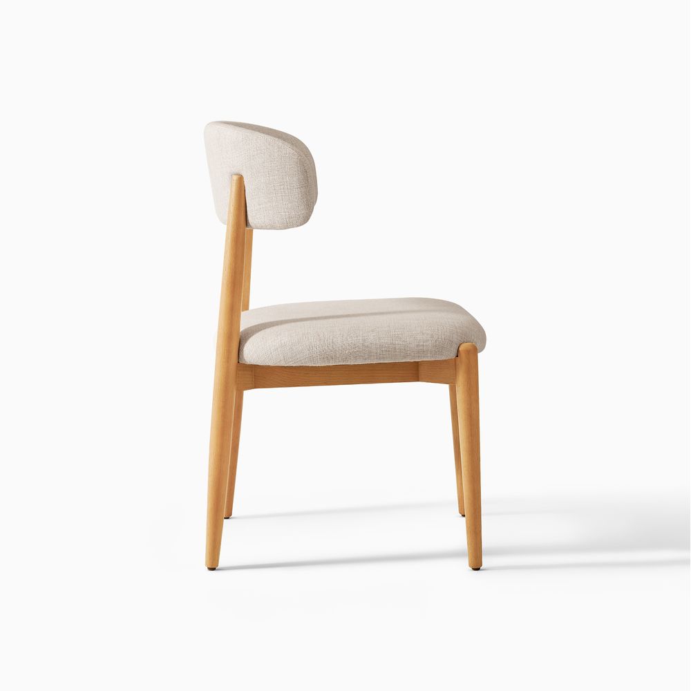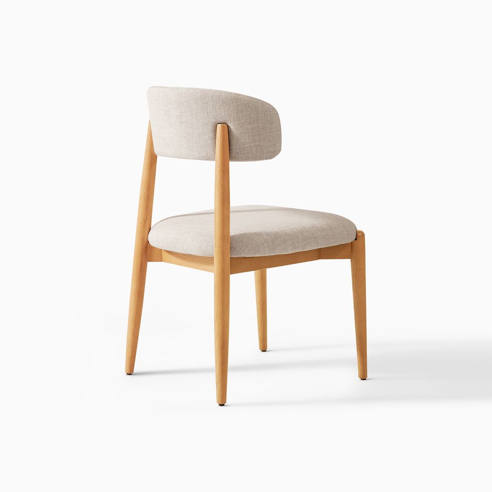 Greta is filled with mid-century modern charm, defined by slender, tapered solid wood legs that create a poised, elegant stance. The gently arched backrest wraps just enough to offer support without visual weight, while the softly padded seat cushion adds comfort and balance. The result is a silhouette that feels both graceful and grounded. With its clean lines and quiet warmth, Greta fits effortlessly into Danish, Scandinavian, organic modern, and other minimal-leaning interiors.