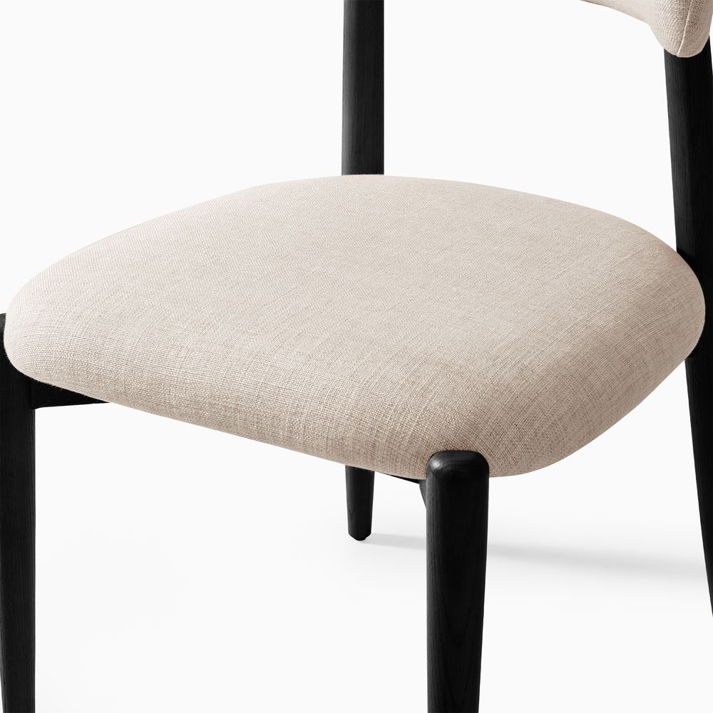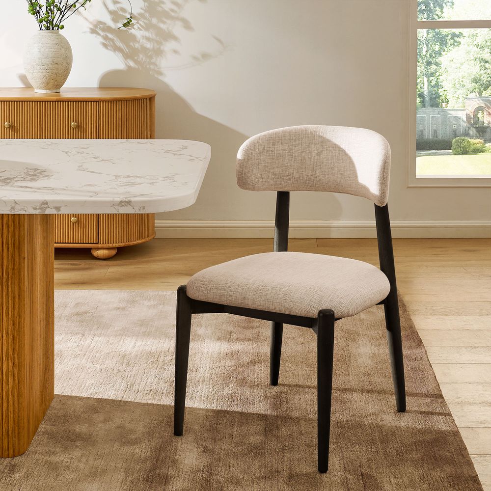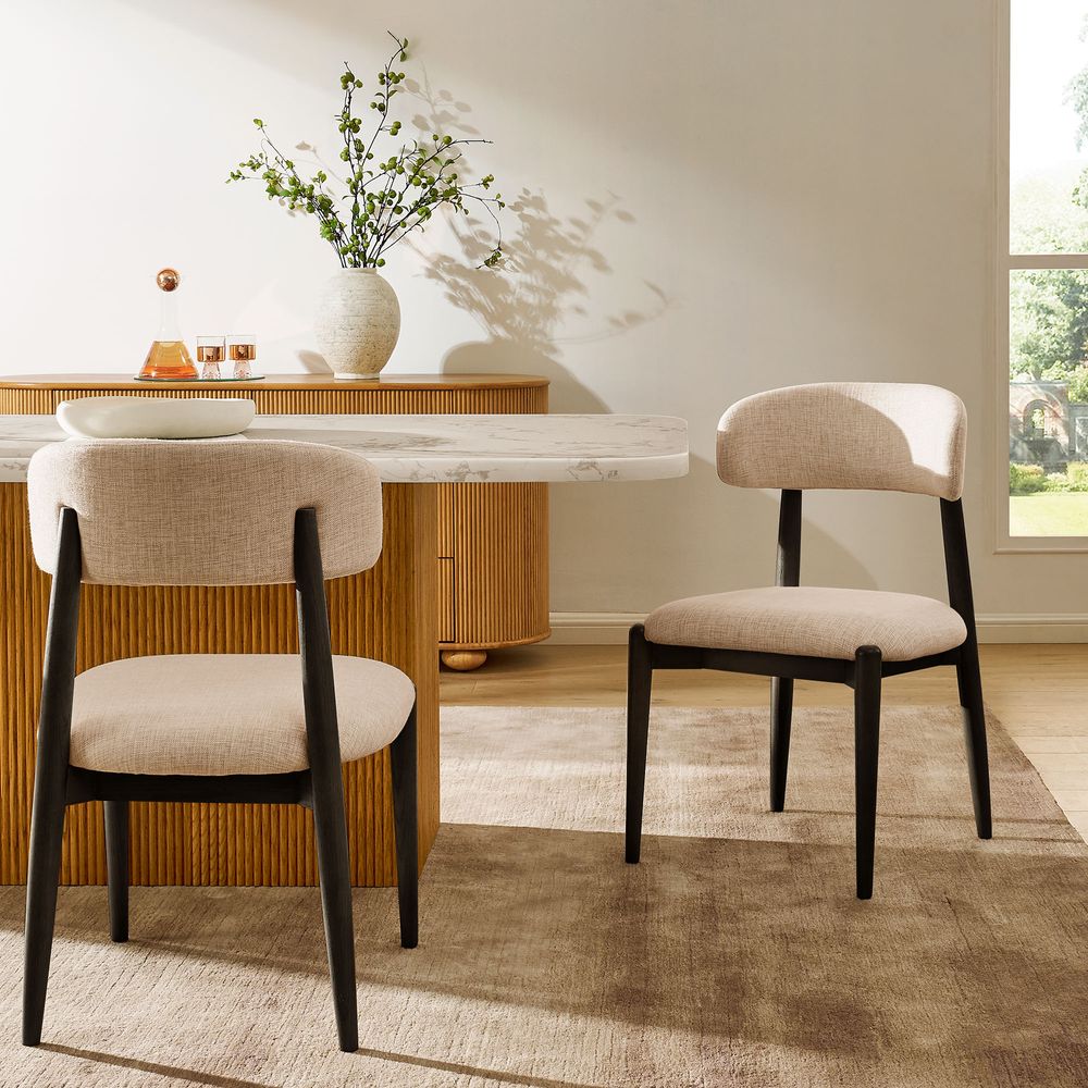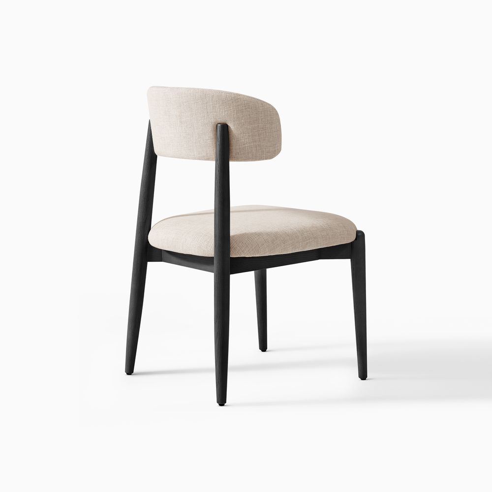 Greta is filled with mid-century modern charm, defined by slender, tapered solid wood legs that create a poised, elegant stance. The gently arched backrest wraps just enough to offer support without visual weight, while the softly padded seat cushion adds comfort and balance. The result is a silhouette that feels both graceful and grounded. With its clean lines and quiet warmth, Greta fits effortlessly into Danish, Scandinavian, organic modern, and other minimal-leaning interiors.