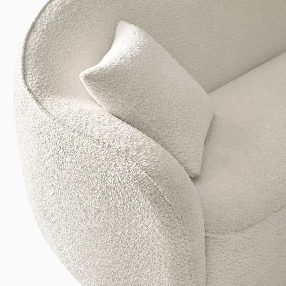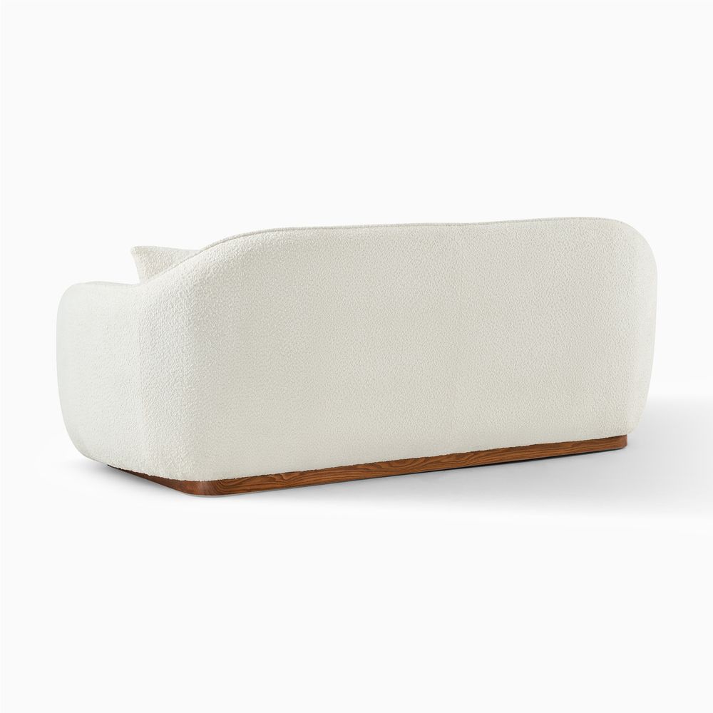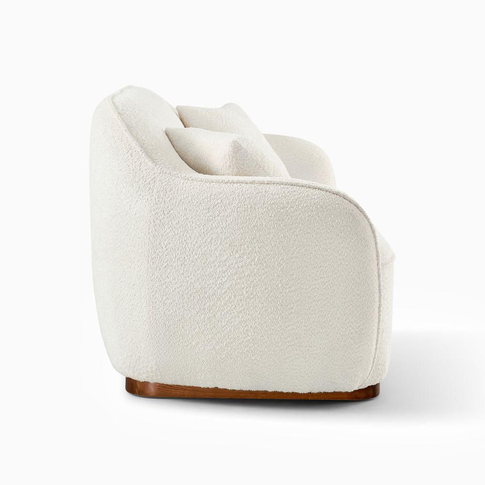 American solid ash wood and plywood frame.Bouclé fabric with spill-resistant and gives it a super soft handfeel.Seat cushions have fiber-wrapped, high-resiliency polyurethane foam cores.Sinuous spring suspension with reinforced elastic webbing.The upholstery on the sofa adds soft padding for cozy, stylish seating surfaces.84" sofa designed for 3-4 people's gathering.2 throw pillows are included.Items purchased at different times may not match due to different dye lots, also color perception can vary by lighting and devices.