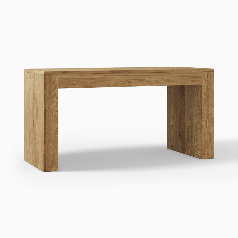 Himmel desk offers a refined statement for any entryway or living space. Its gracefully rounded corners and seamless waterfall design highlight the exquisite natural grain of the wood, creating a sense of understated luxury.