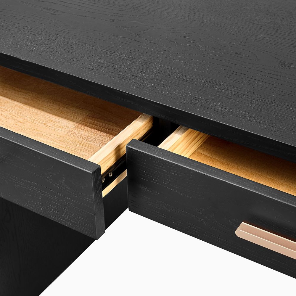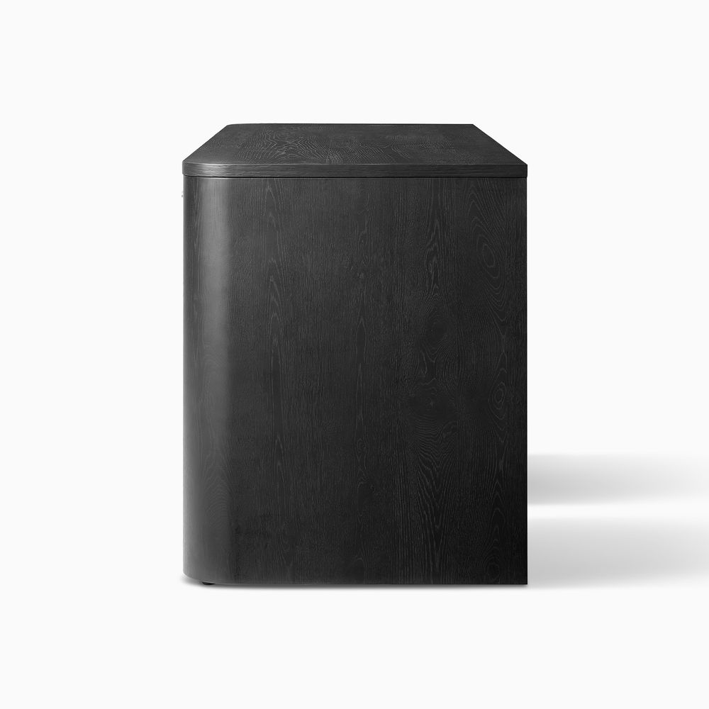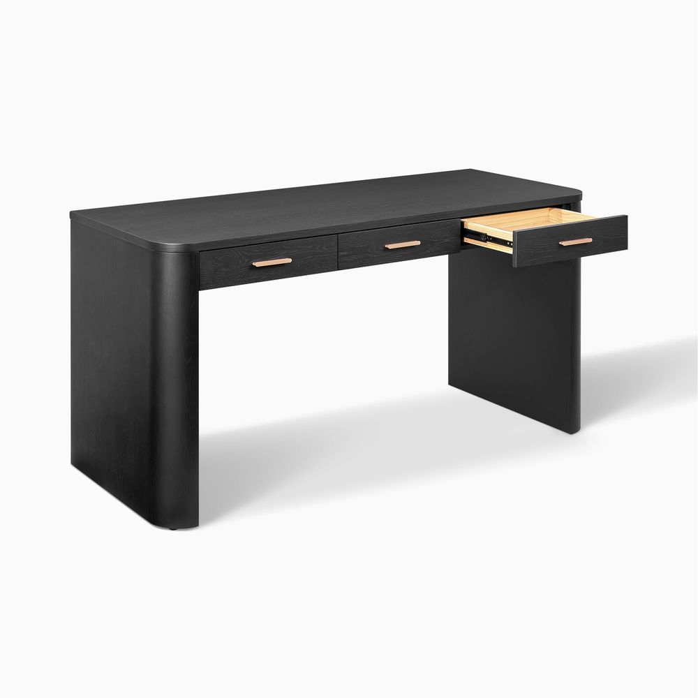 Himmel desk offers a refined statement for any entryway or living space. Its gracefully rounded corners and seamless waterfall design highlight the exquisite natural grain of the wood, creating a sense of understated luxury.