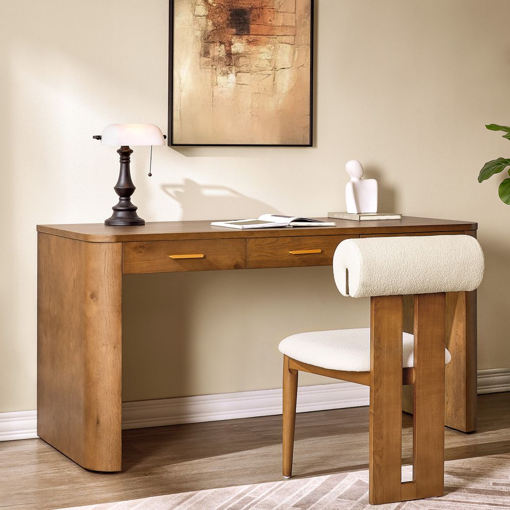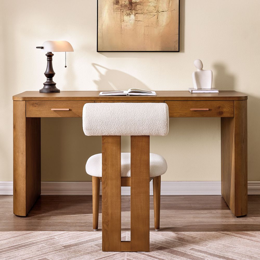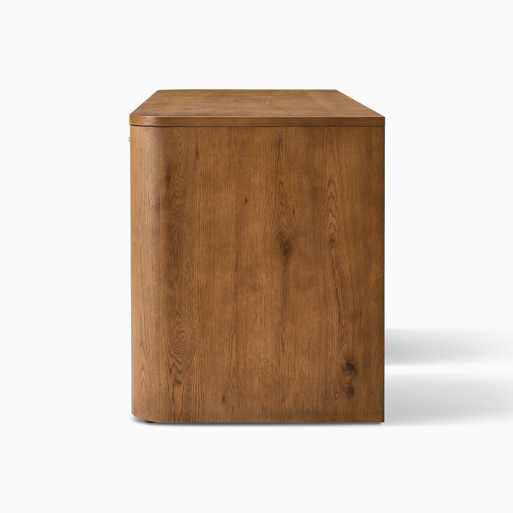 Himmel desk offers a refined statement for any entryway or living space. Its gracefully rounded corners and seamless waterfall design highlight the exquisite natural grain of the wood, creating a sense of understated luxury.