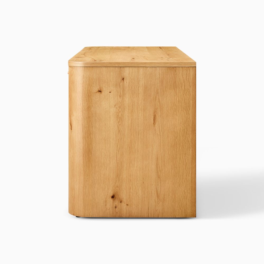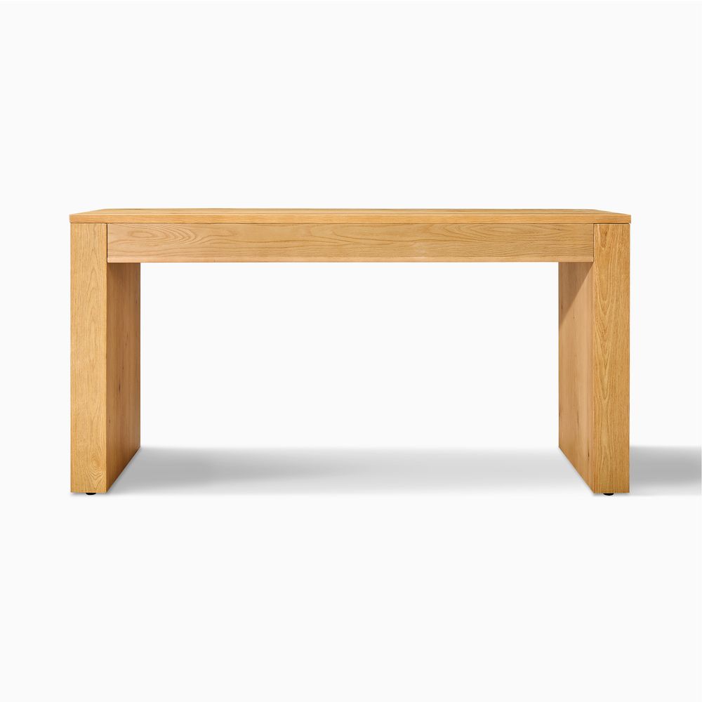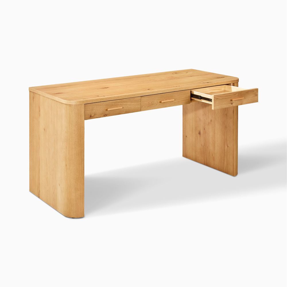 Himmel desk offers a refined statement for any entryway or living space. Its gracefully rounded corners and seamless waterfall design highlight the exquisite natural grain of the wood, creating a sense of understated luxury.