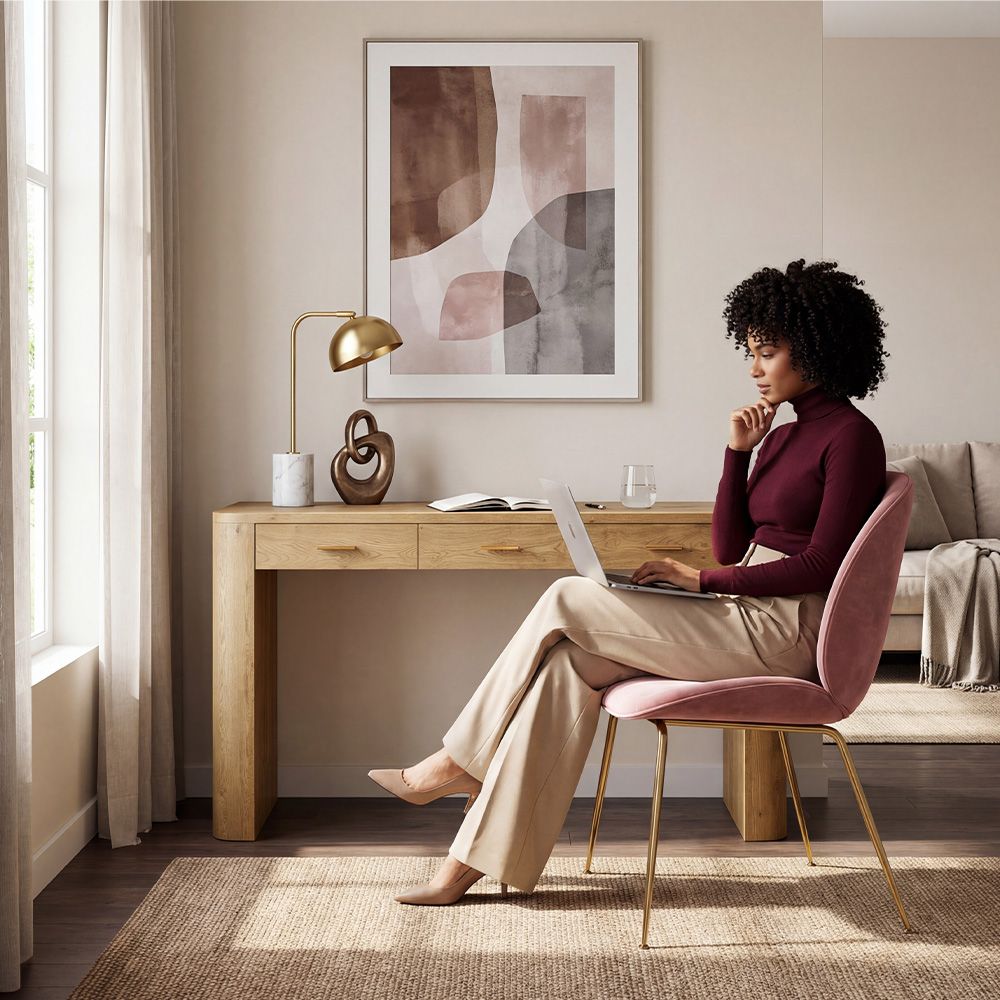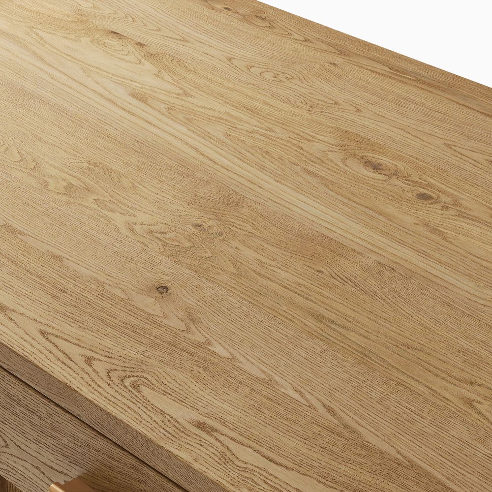 Himmel desk offers a refined statement for any entryway or living space. Its gracefully rounded corners and seamless waterfall design highlight the exquisite natural grain of the wood, creating a sense of understated luxury.