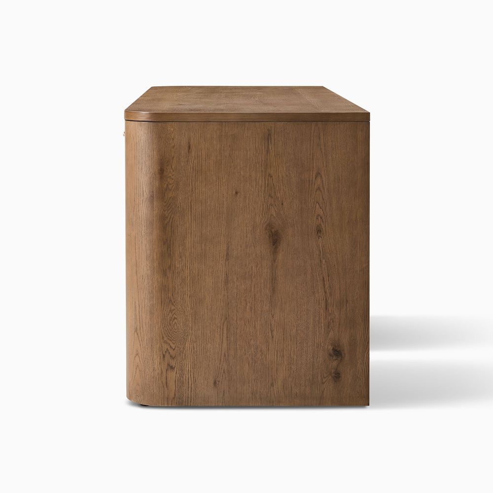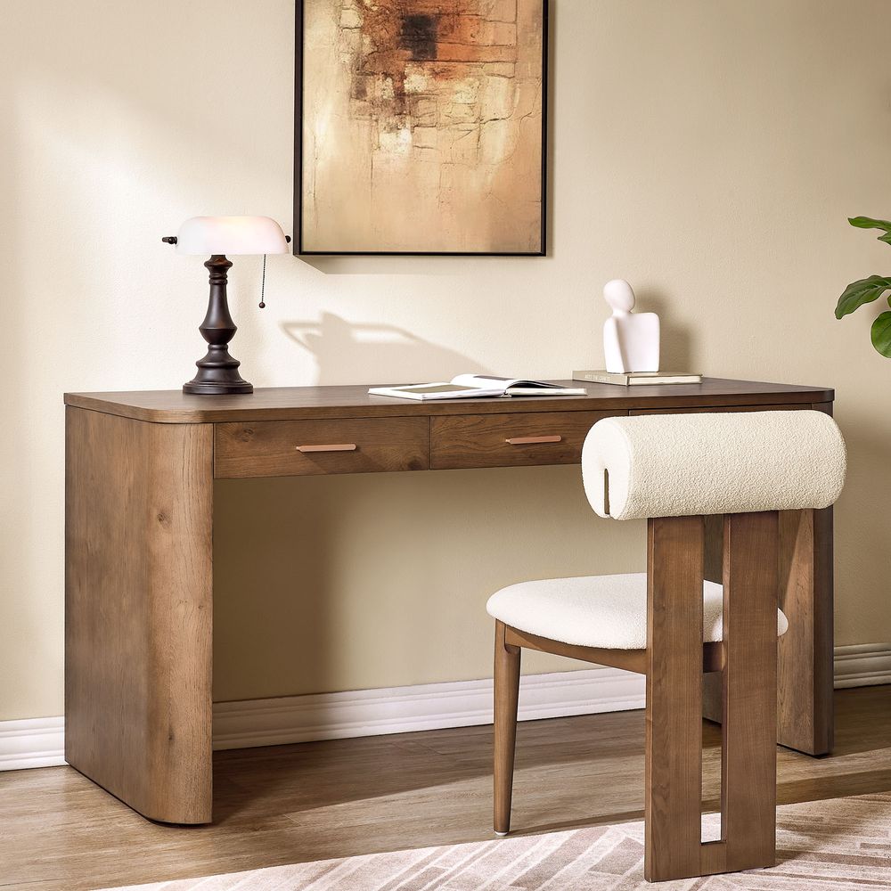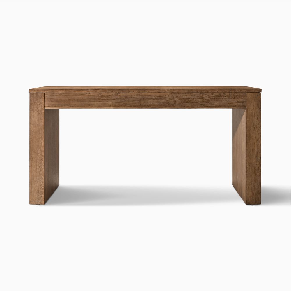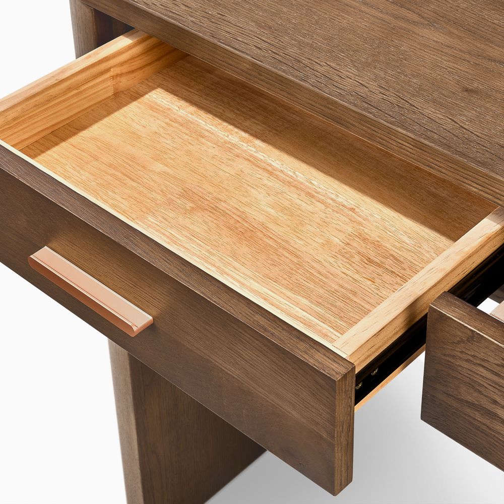 Himmel desk offers a refined statement for any entryway or living space. Its gracefully rounded corners and seamless waterfall design highlight the exquisite natural grain of the wood, creating a sense of understated luxury.
