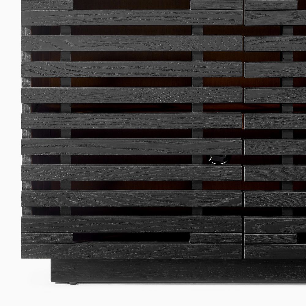 Designed with a fence-like pattern, this piece blends vintage with modern utility. The warm wooden slats and open structure create a unique aesthetic, offering a stylish storage solution that adds a touch of natural refinement to any living space.