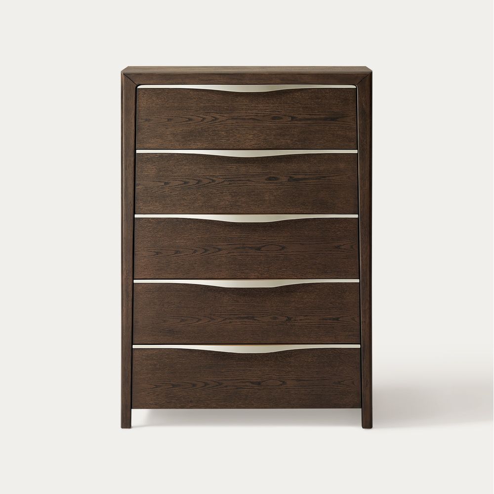 Crafted of rubber wood and engineered wood with American oak veneers.All wood is kiln-dried for added durability.Finish is achieved through multistep process in which wood is wire brushed to highlight its rich grain.Wood glazing adds visual interest with greater depth and layering and enhances coloring.Drawers are crafted with precision dovetail joints for superior sturdiness and weight-bearing strength.Solid wood blocks are used at structural joints for reinforcement.Color perception may vary due to wood characteristics, lighting, and devices. Wood grain variation is expected, as each is unique.Anti-tip kit hardware (included) is highly recommended to provide protection against tipping of furniture.