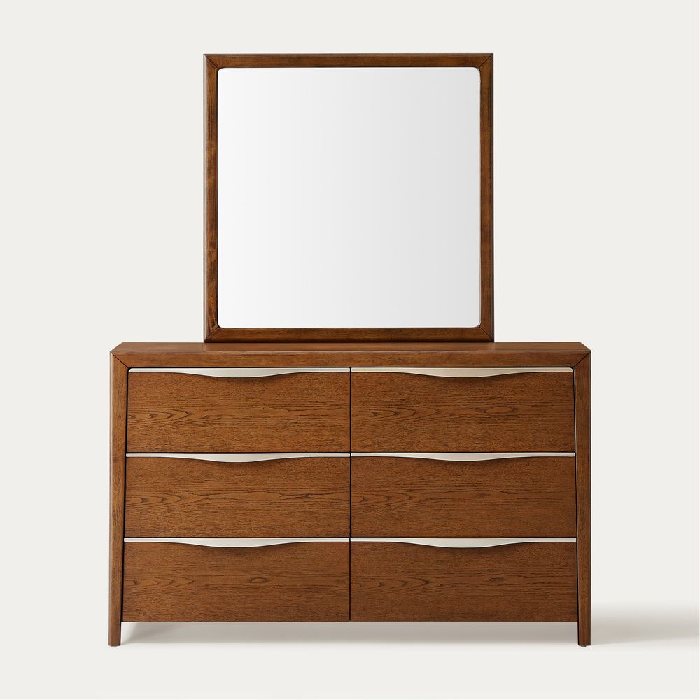Crafted of rubber wood and engineered wood with American oak veneers.All wood is kiln-dried for added durability.Finish is achieved through multistep process in which wood is wire brushed to highlight its rich grain.Wood glazing adds visual interest with greater depth and layering and enhances coloring.Drawers are crafted with precision dovetail joints for superior sturdiness and weight-bearing strength.Solid wood blocks are used at structural joints for reinforcement.Color perception may vary due to wood characteristics, lighting, and devices. Wood grain variation is expected, as each is unique.Anti-tip kit hardware (included) is highly recommended to provide protection against tipping of furniture.