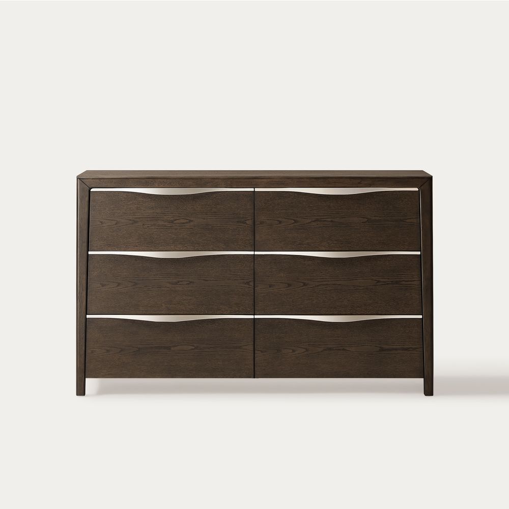 Crafted of rubber wood and engineered wood with American oak veneers.All wood is kiln-dried for added durability.Finish is achieved through multistep process in which wood is wire brushed to highlight its rich grain.Wood glazing adds visual interest with greater depth and layering and enhances coloring.Drawers are crafted with precision dovetail joints for superior sturdiness and weight-bearing strength.Solid wood blocks are used at structural joints for reinforcement.Color perception may vary due to wood characteristics, lighting, and devices. Wood grain variation is expected, as each is unique.Anti-tip kit hardware (included) is highly recommended to provide protection against tipping of furniture.